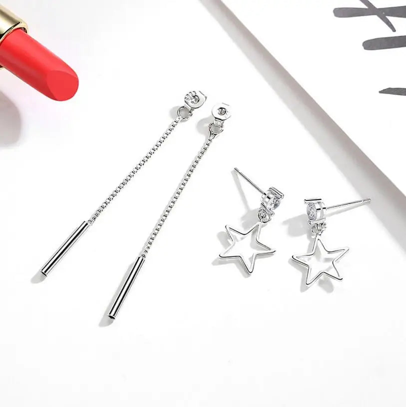 Add a touch of elegance to your outfit with these stunning 925 sterling silver earrings featuring a zirconia star design. The long tassel chain adds a trendy and stylish touch to your look.