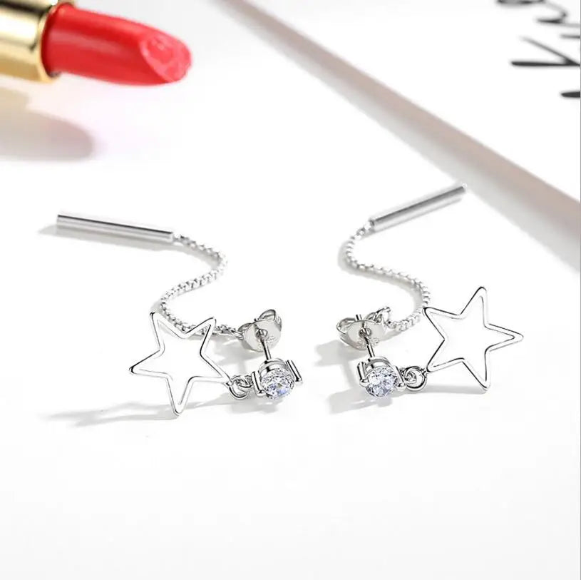 925 Silver Zirconia Star Tassel Earrings Ear Chain