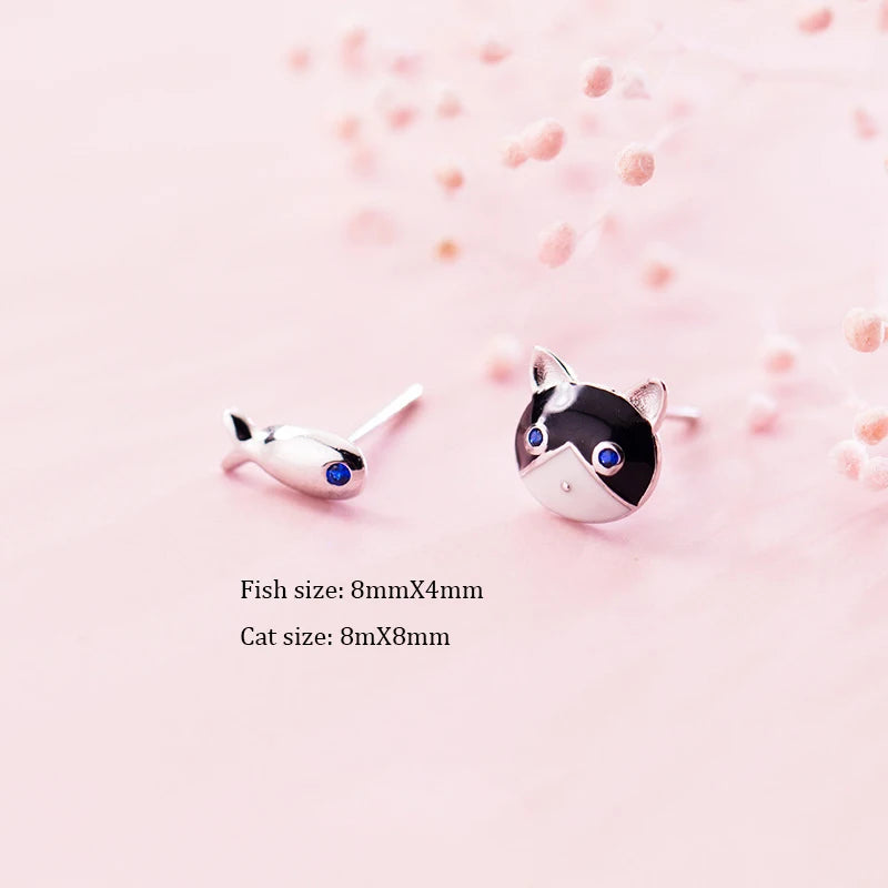 These adorable tiny cat fish stud earrings are made of 100% 925 solid sterling silver, perfect gift for your daughter or girls. Delicate and unique design.