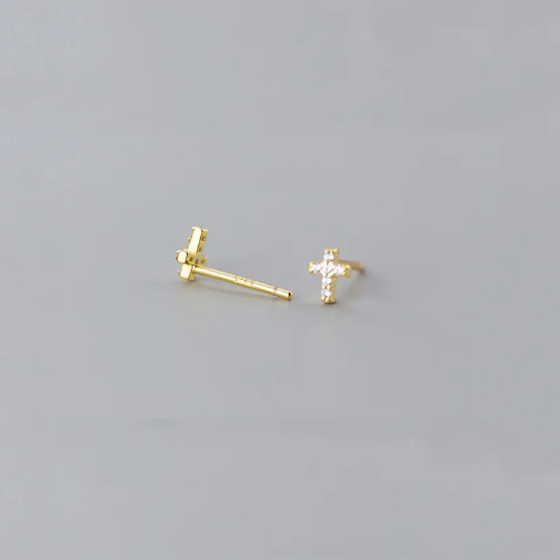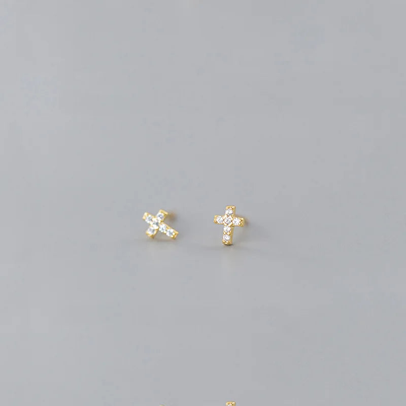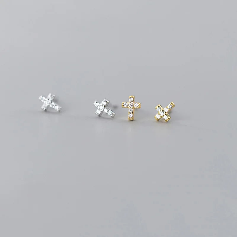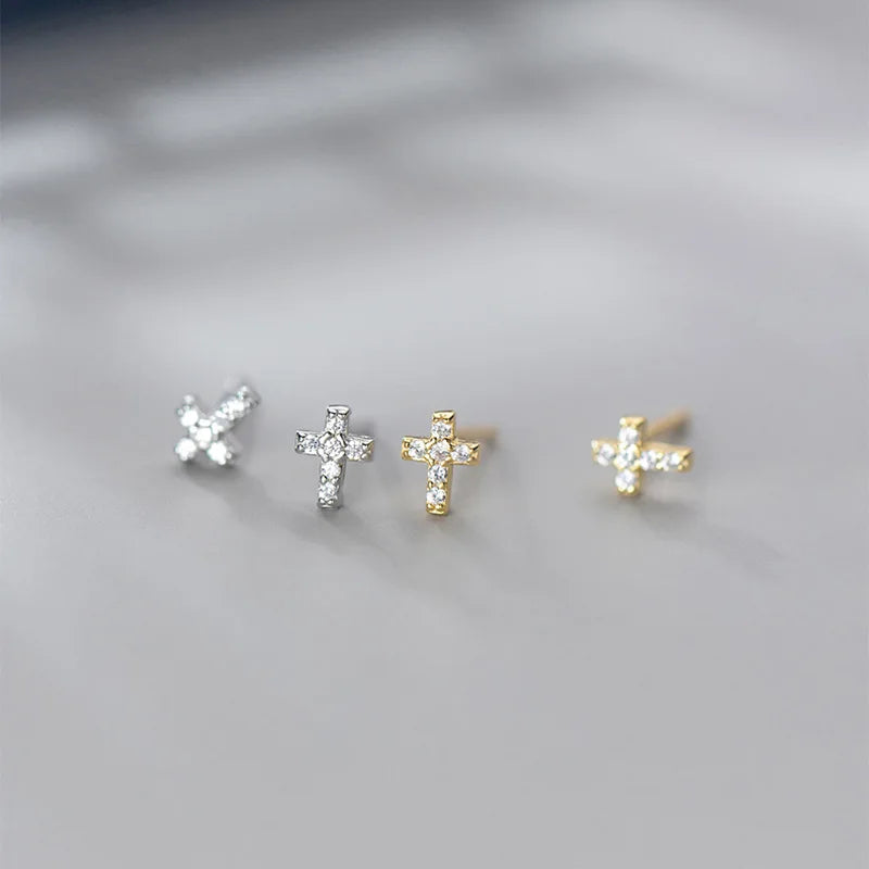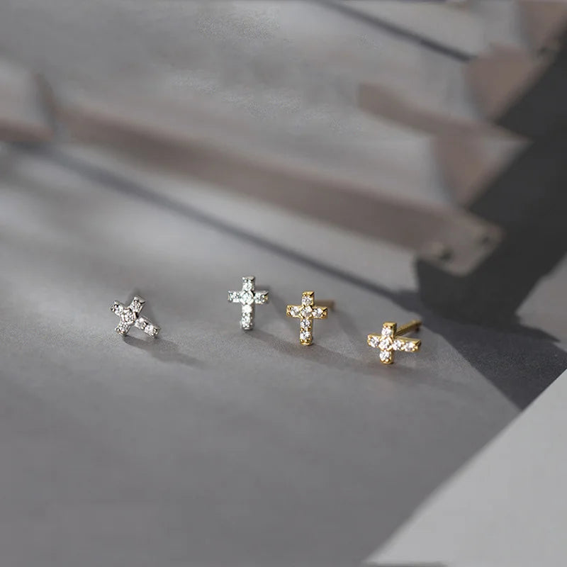 Add a touch of elegance with these mini cubic zirconia cross stud earrings made of 925 sterling silver. These tiny studs are perfect for everyday wear and will complement any outfit.