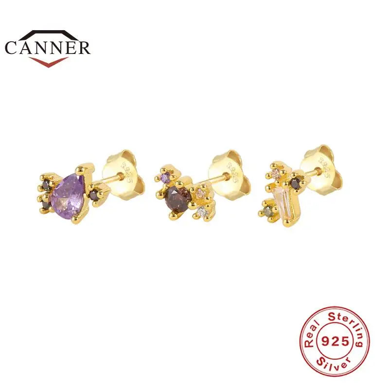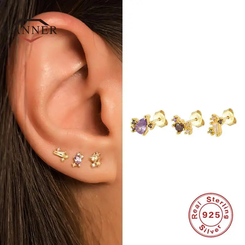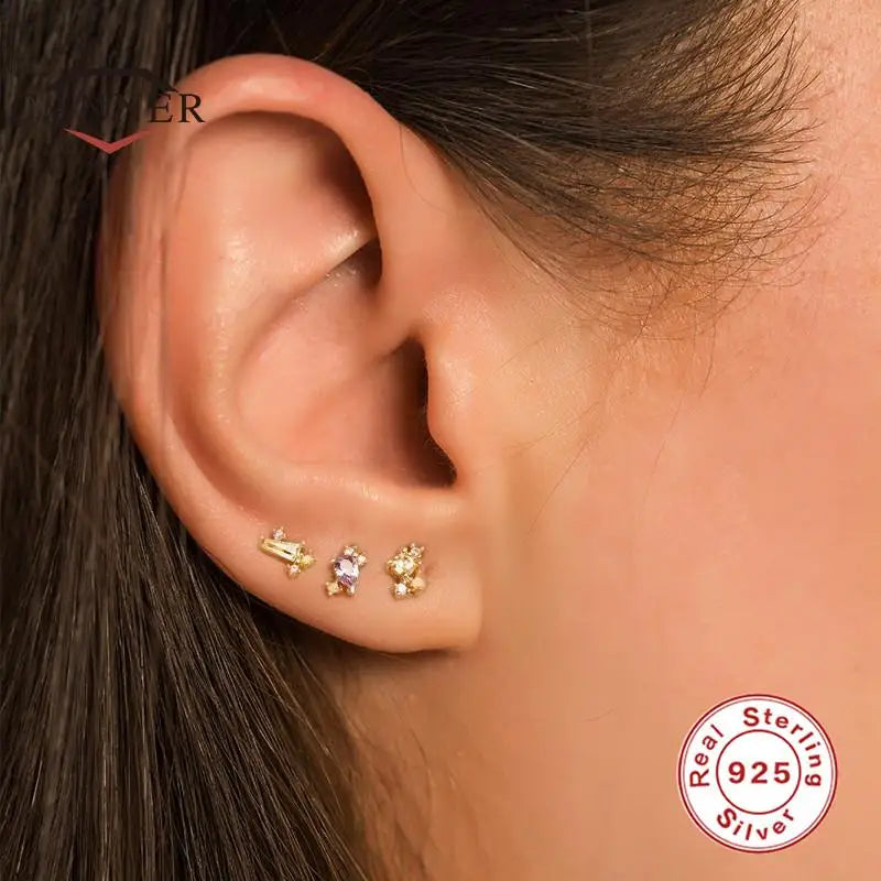 Elevate your style with this set of 3 sterling silver colored cubic zirconia stud earrings. Perfect for cartilage piercings, these earrings are a chic addition to your jewelry collection.