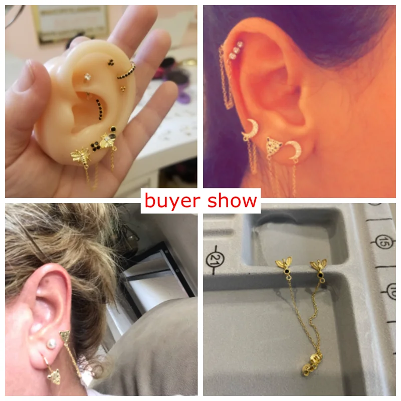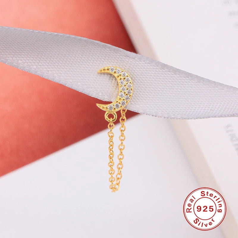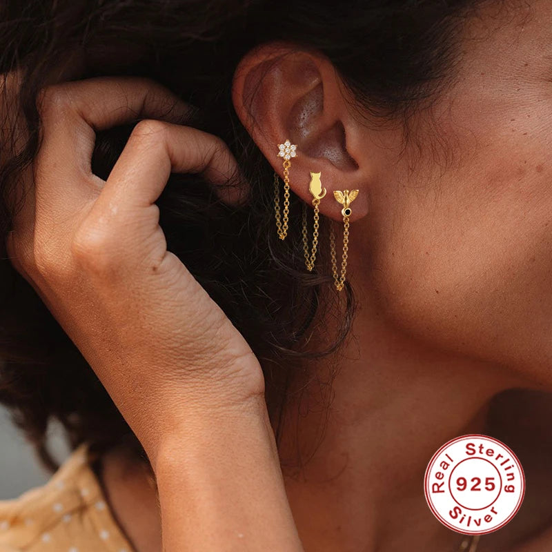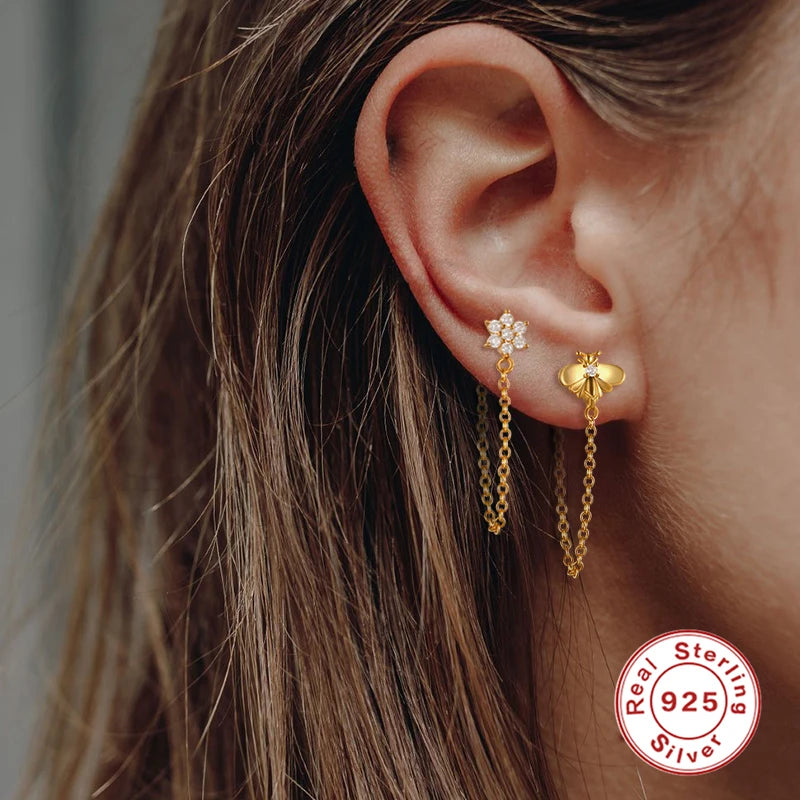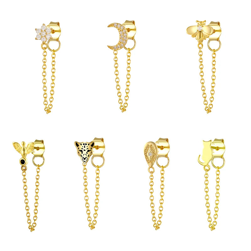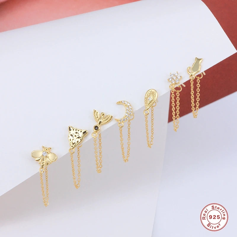 Add glamour to your look with these stunning sterling silver earrings featuring bee, leopard, moon, and star designs. The bling zircon tassel link adds extra charm.