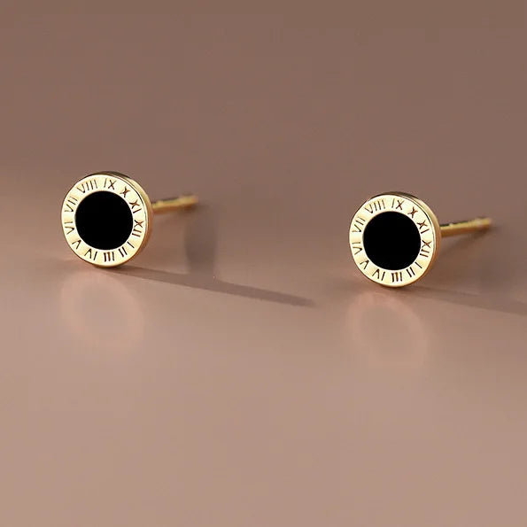 These round stud earrings are made of real 925 sterling silver with enamel detailing. They feature a classic Roman numeral design, making them a timeless and elegant accessory. Perfect for adding a minimalist touch to any outfit.