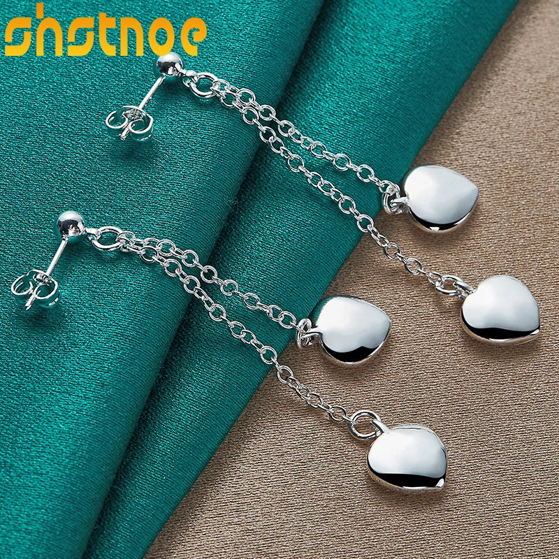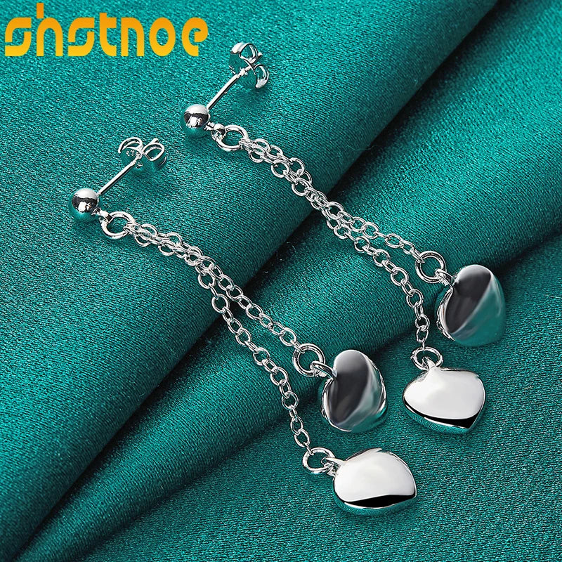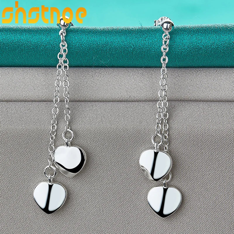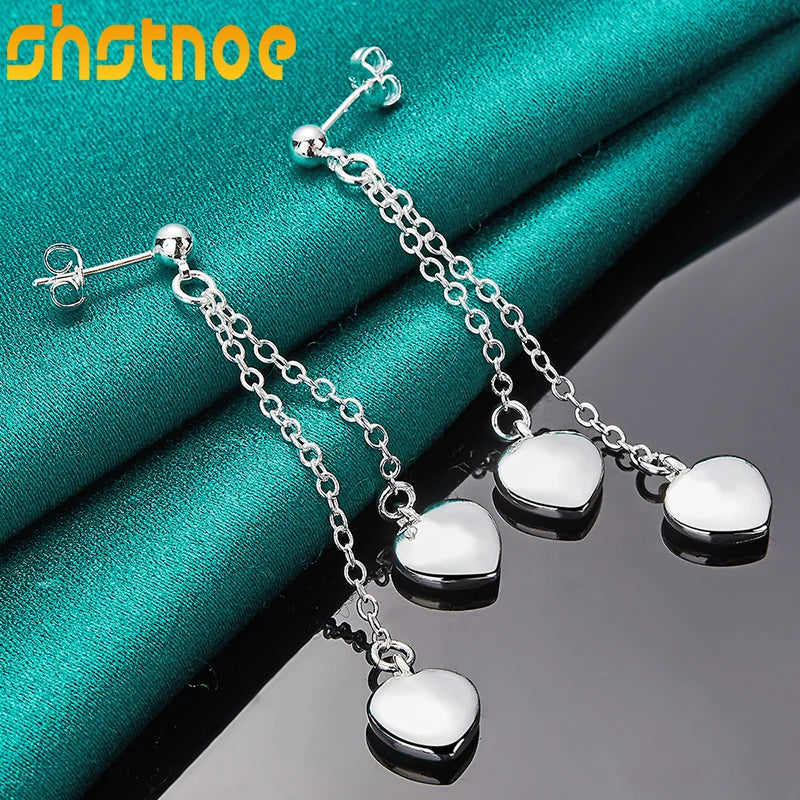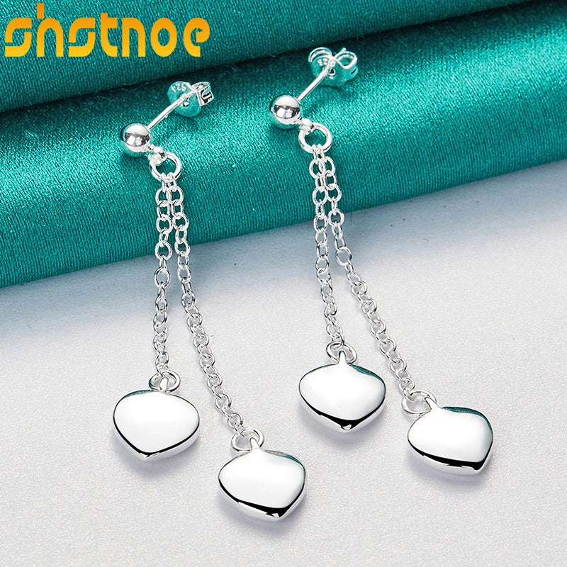 Beautiful heart-shaped drop earrings made of solid 925 sterling silver, perfect for parties, engagements, weddings, or as a Valentine's Day gift.