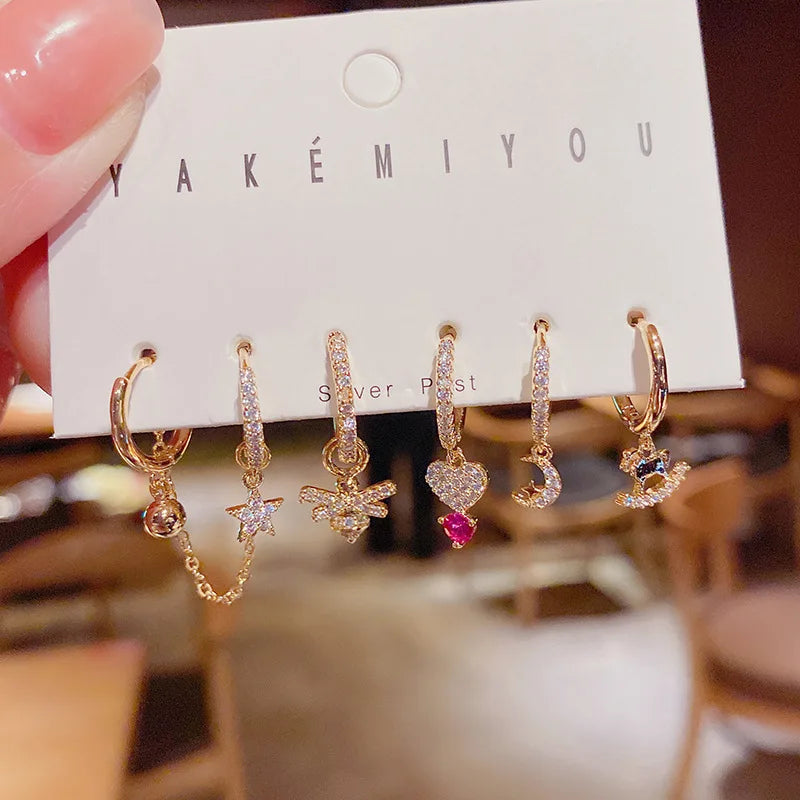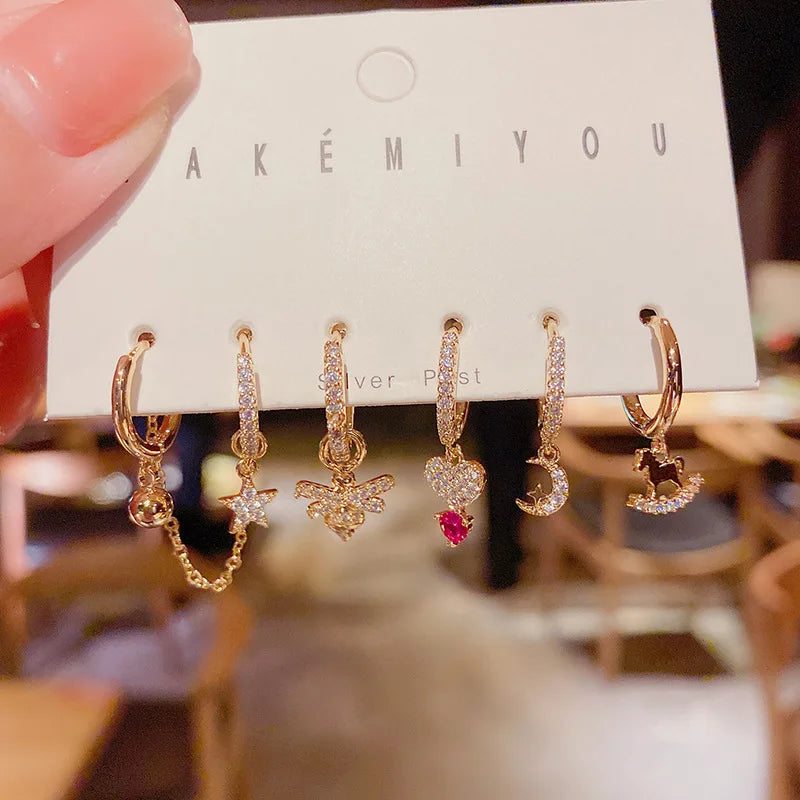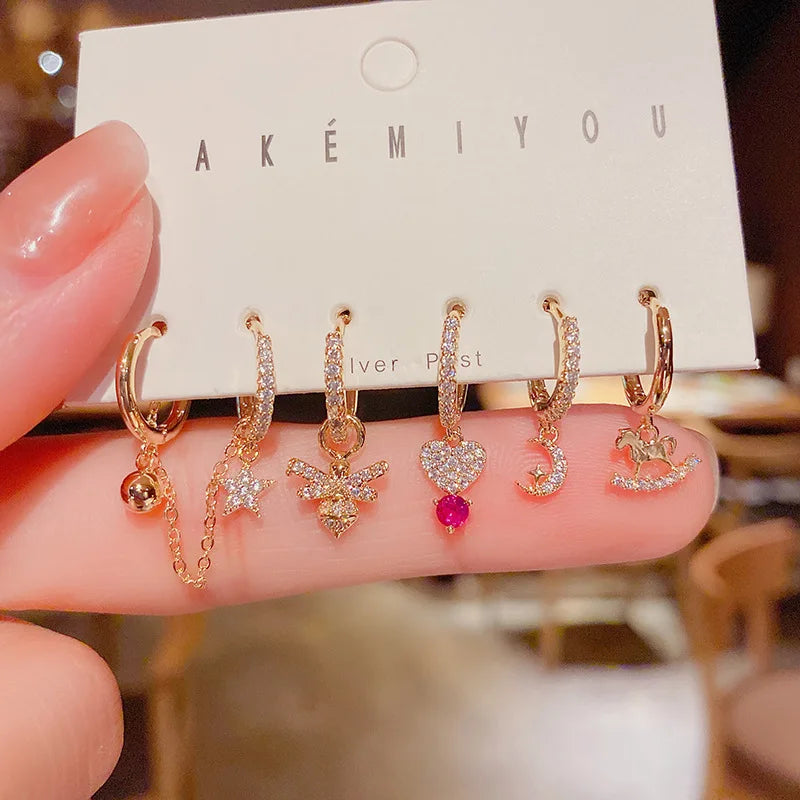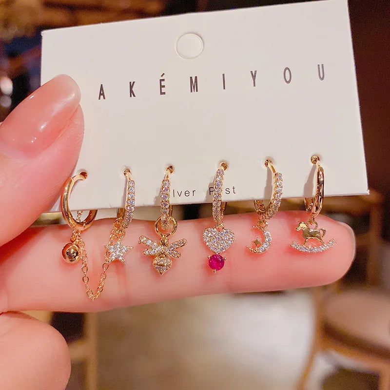 Get this set of 925 sterling silver hoop earrings featuring creative micro zircon cartoon designs. Perfect for women who love unique jewelry pieces.