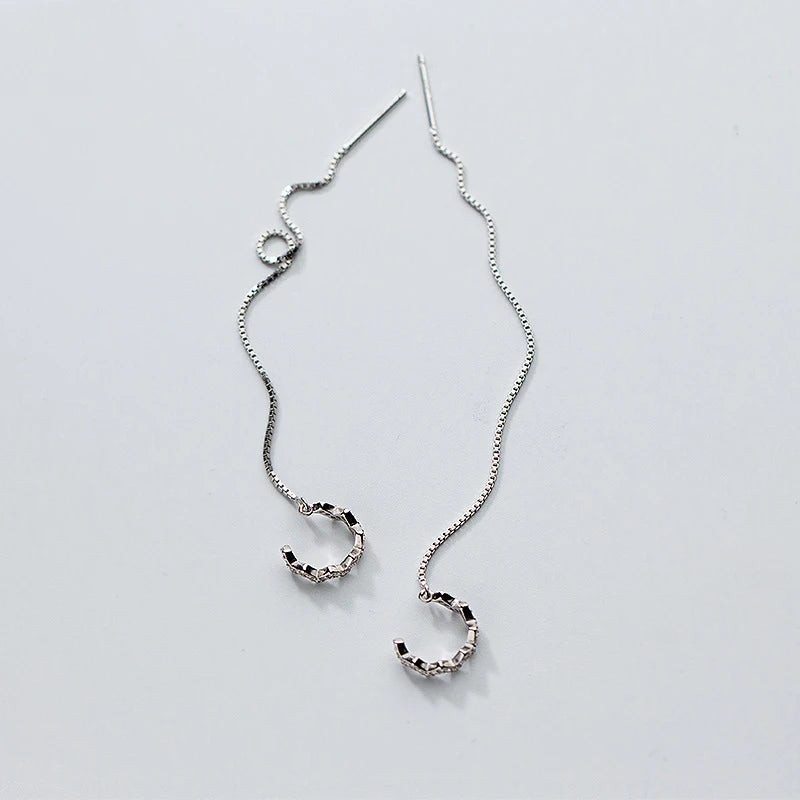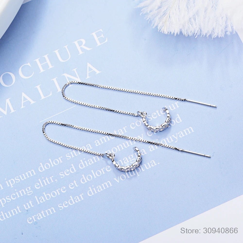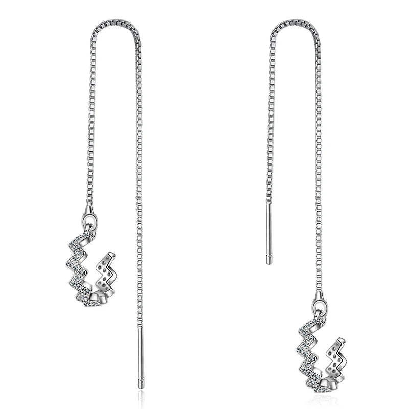 These elegant 925 sterling silver earrings feature a long tassel design with intricate lines. Perfect for teen girls and women who love stylish jewelry.