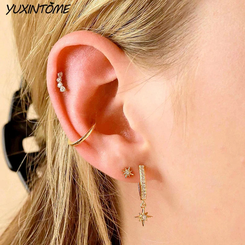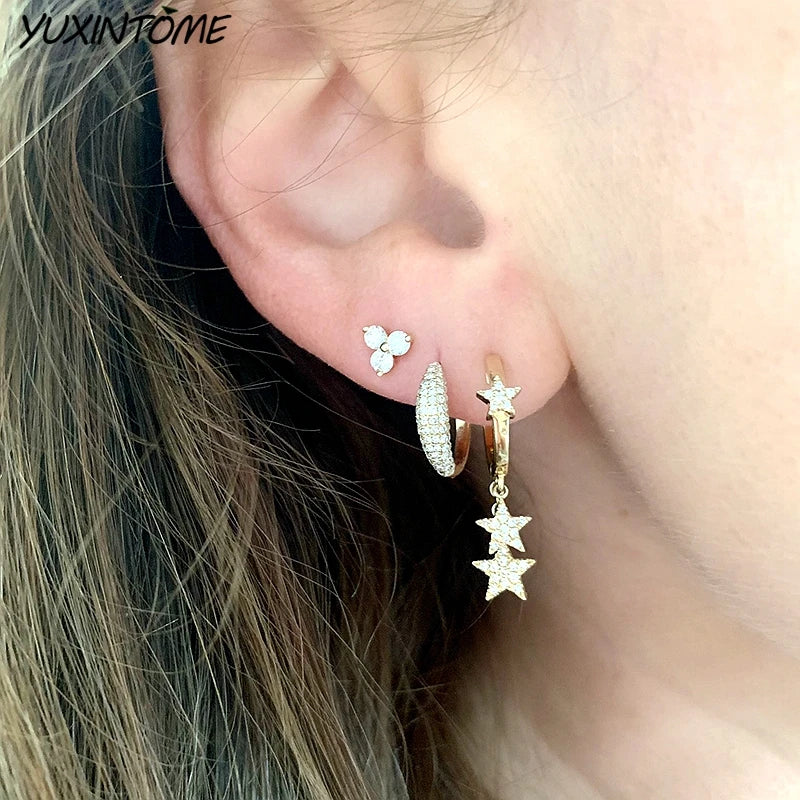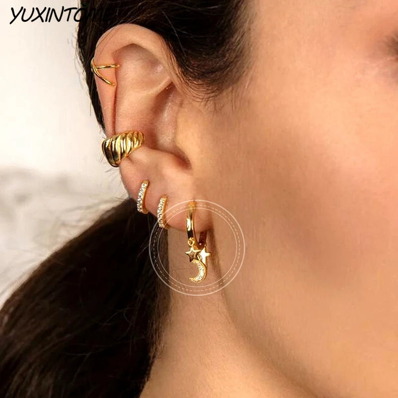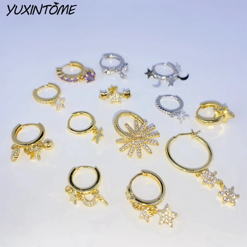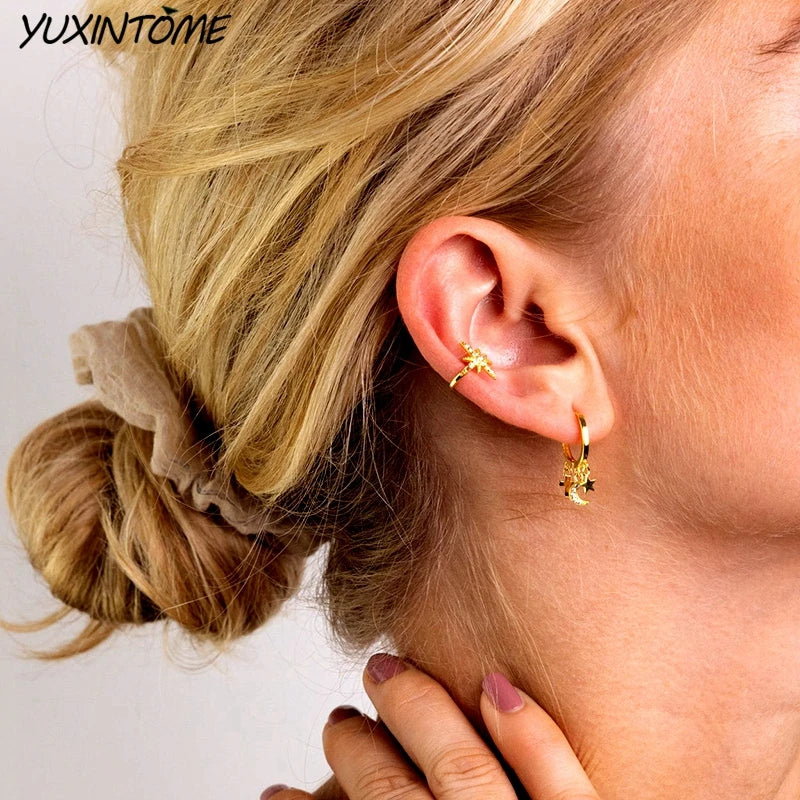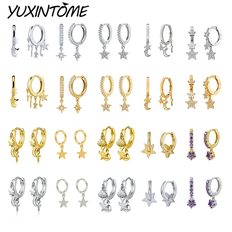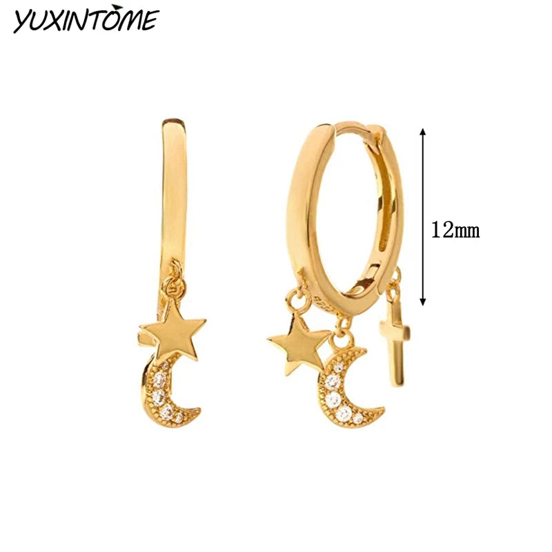 These exquisite small hoop earrings are crafted from 925 sterling silver, featuring moon and star pendants. Perfect for weddings and special occasions.