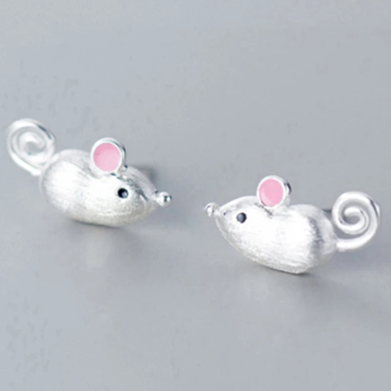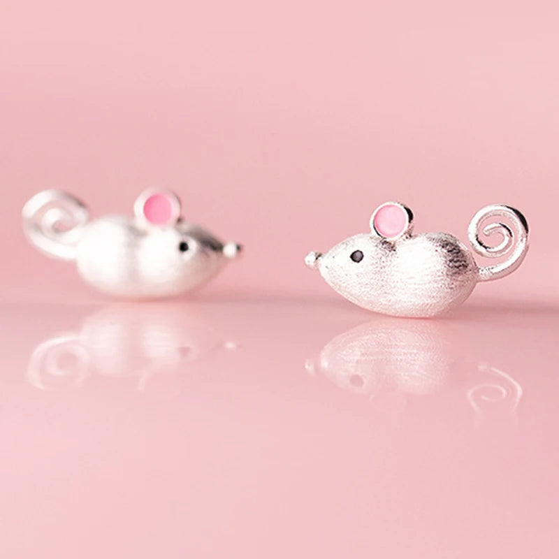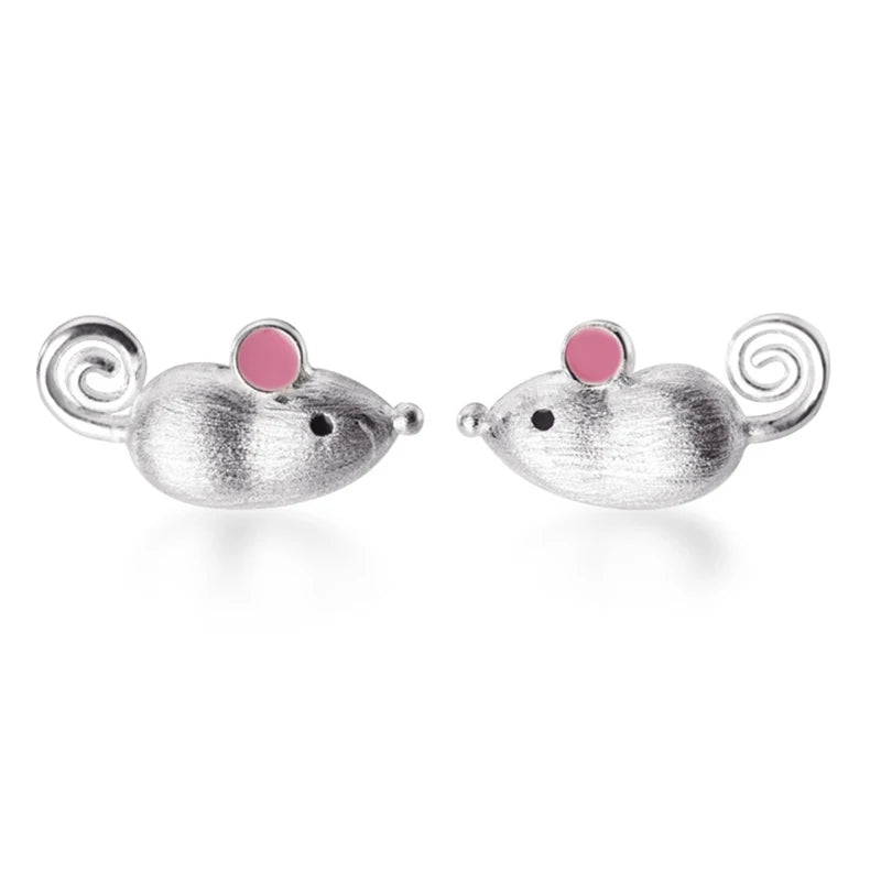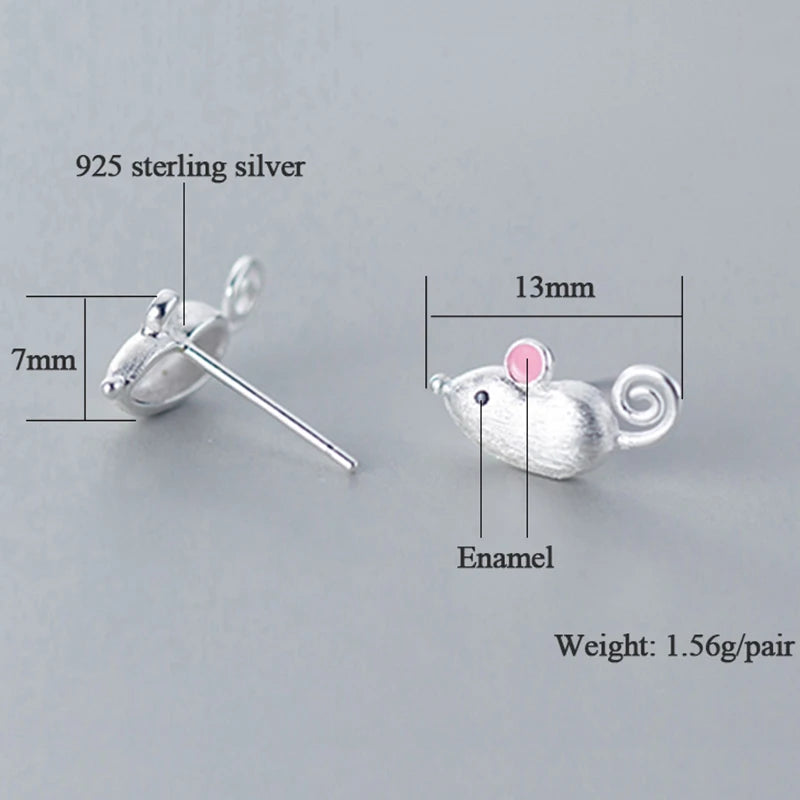 925 Sterling Silver Mouse Stud Earring for Women - Animal Jewelry Gift