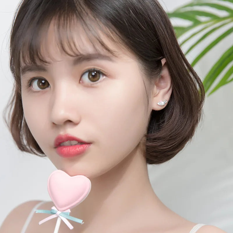 Adorable mouse stud earring made of 100% 925 sterling silver, perfect for women and girls. This cute animal-themed jewelry makes a great gift for any occasion.