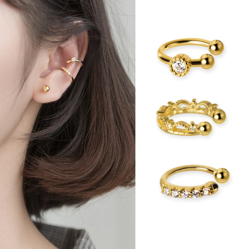 Add a touch of elegance with these beautiful geometric ear cuff earrings made of real 925 sterling silver and embellished with sparkly pave CZ zircon. Perfect for daily wear or special occasions.