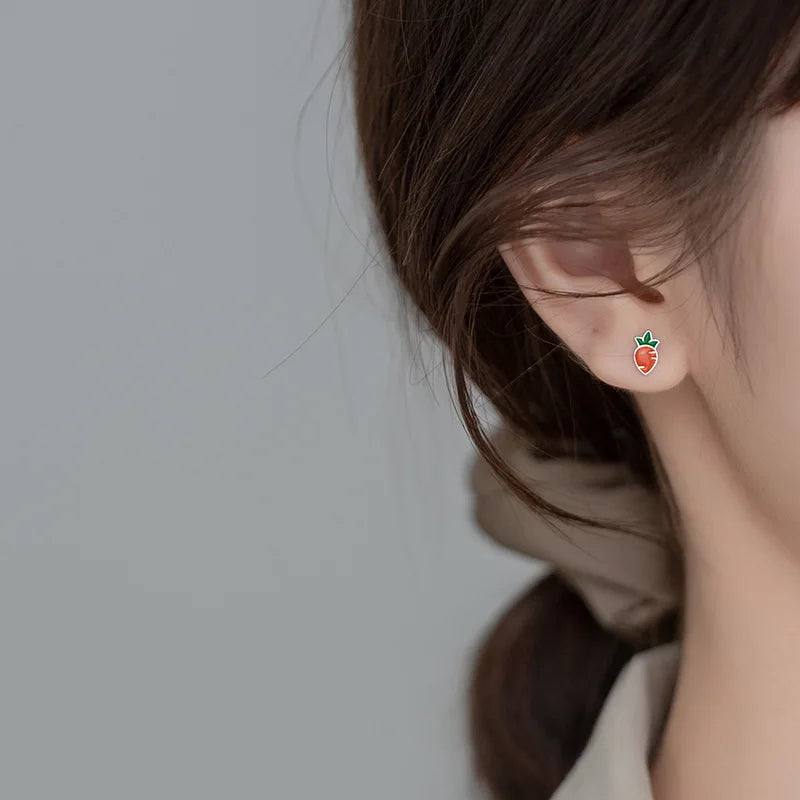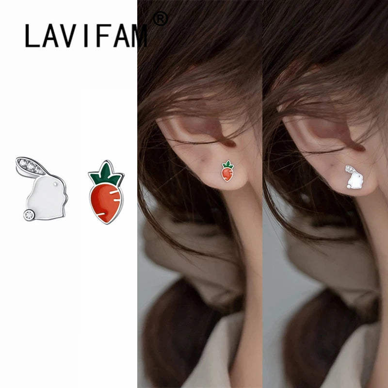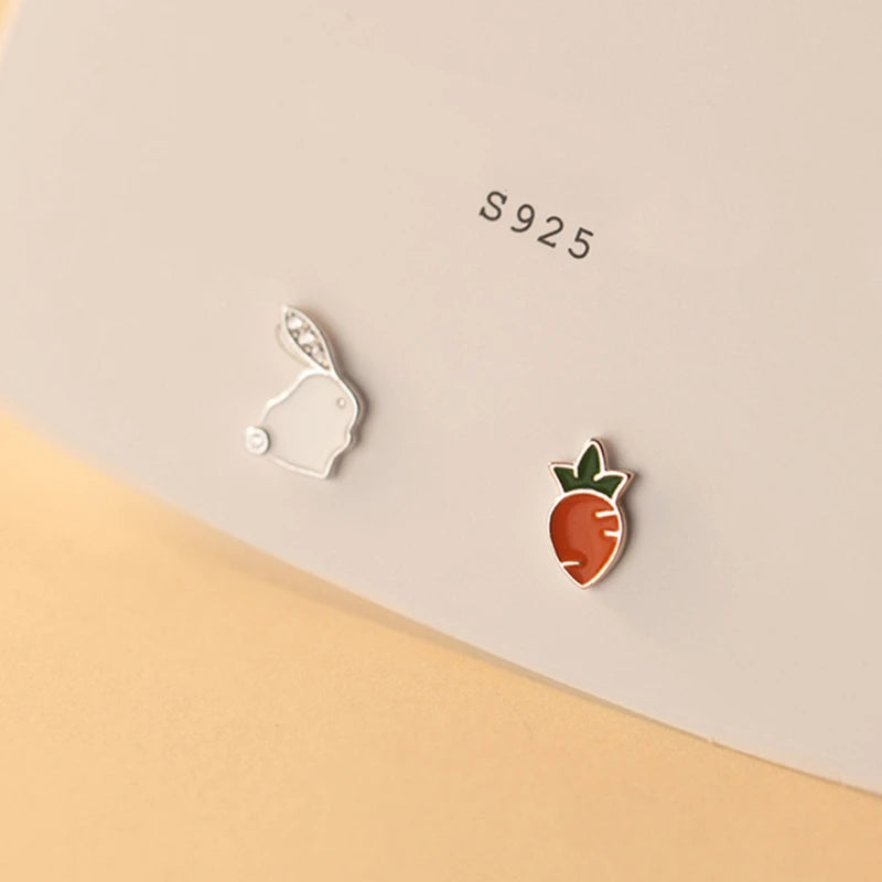 Adorable and fun, these sterling silver rabbit and carrot stud earrings are perfect for girls. The asymmetric design adds a playful touch to any outfit.