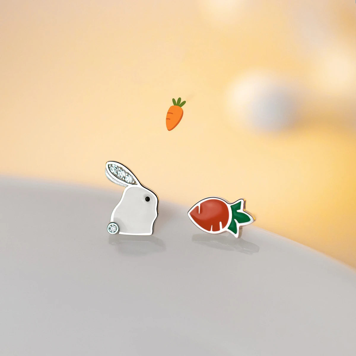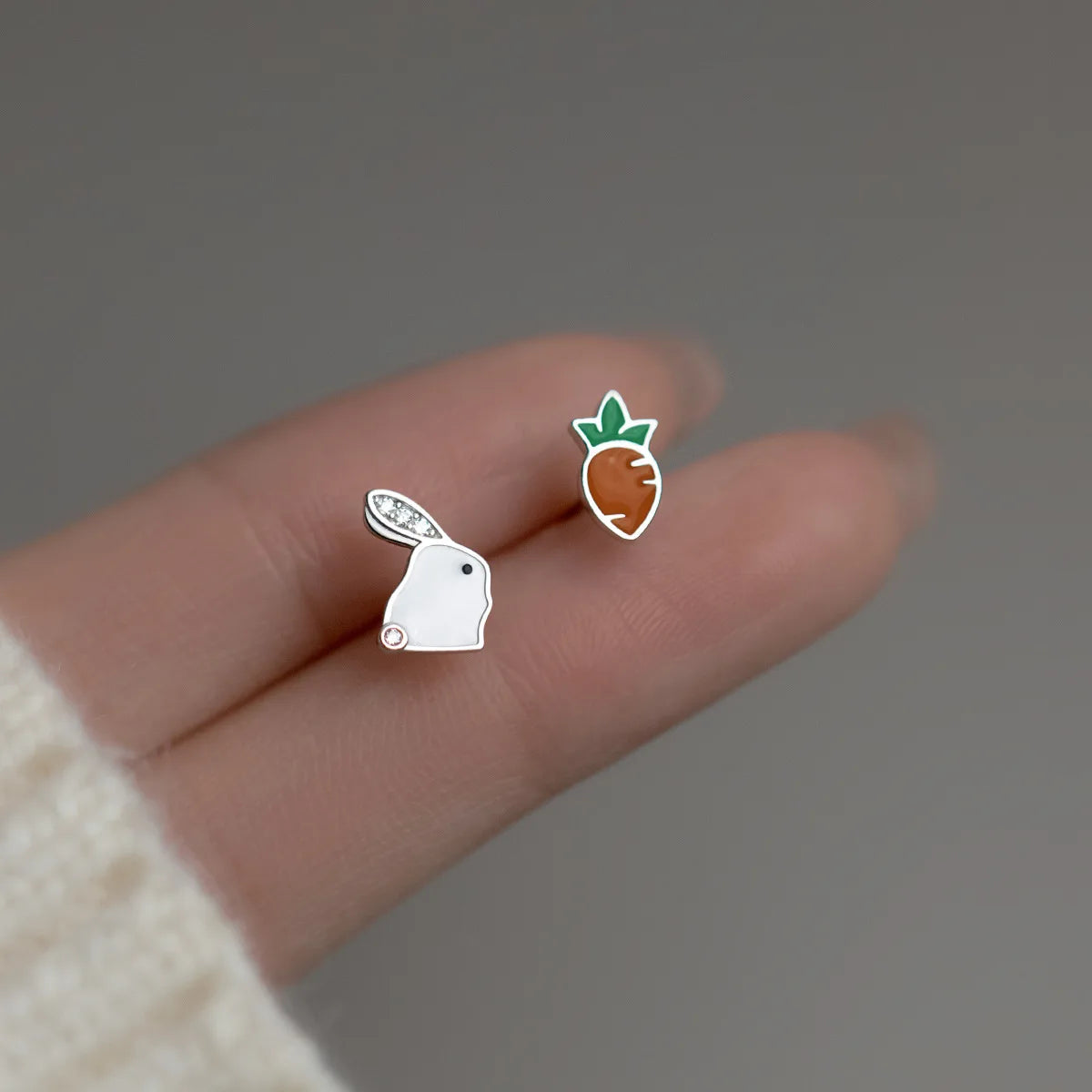 - Asymmetric design with rabbit and carrot for a cute and quirky style