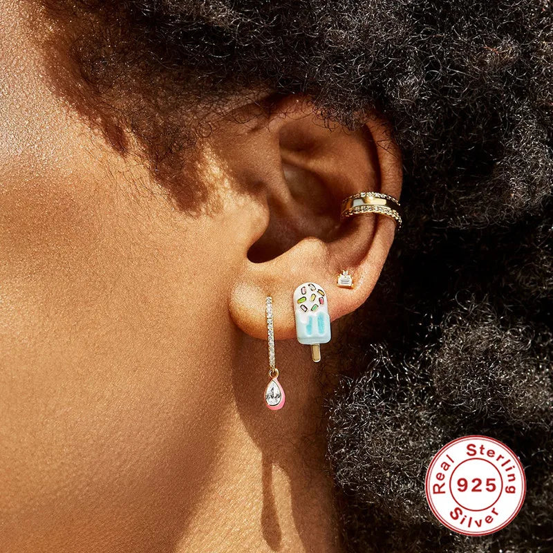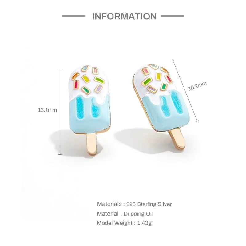 Adorable and versatile summer-themed ice cream stud earrings made from 925 sterling silver. Perfect gift for daughters and girls who love unique jewelry.