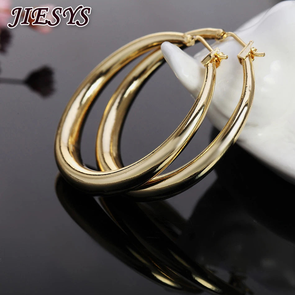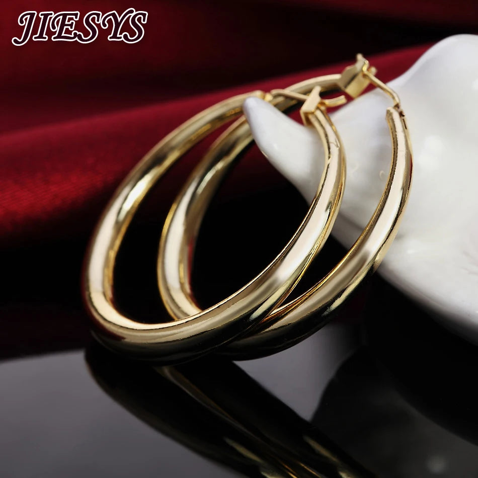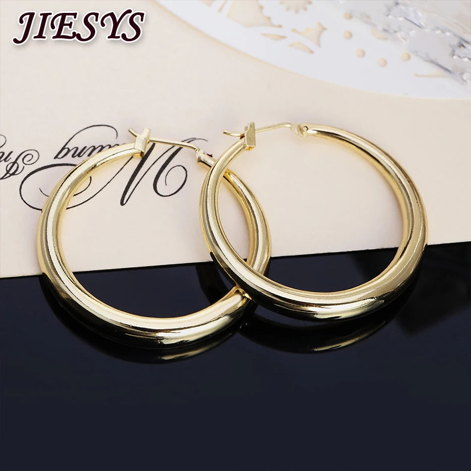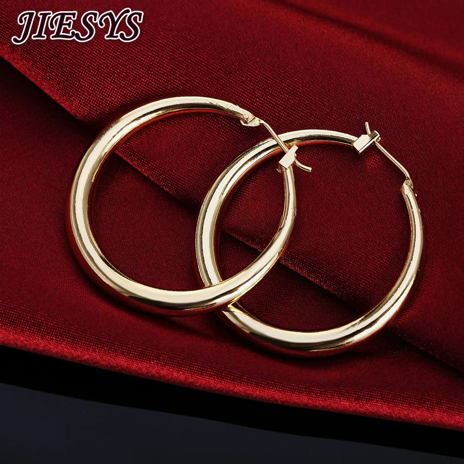 These elegant 925 sterling silver earrings feature a 3.5cm round design plated with 18K gold, making them perfect for weddings or holiday gifting.