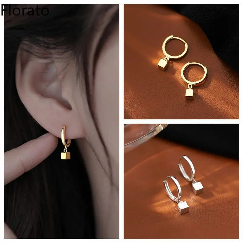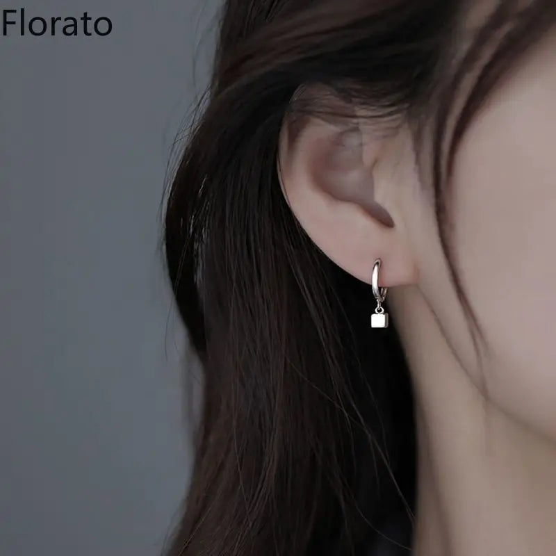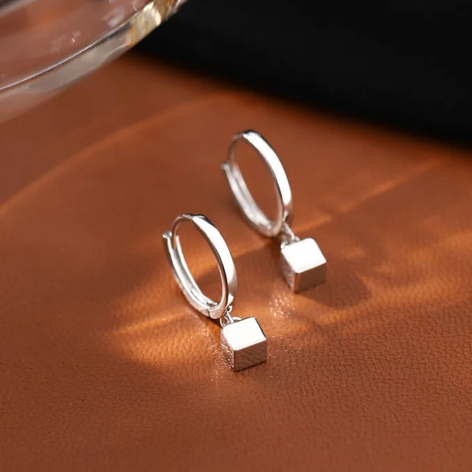 These elegant earrings are made of 925 sterling silver with a unique square drop design. Perfect for everyday wear or special occasions.