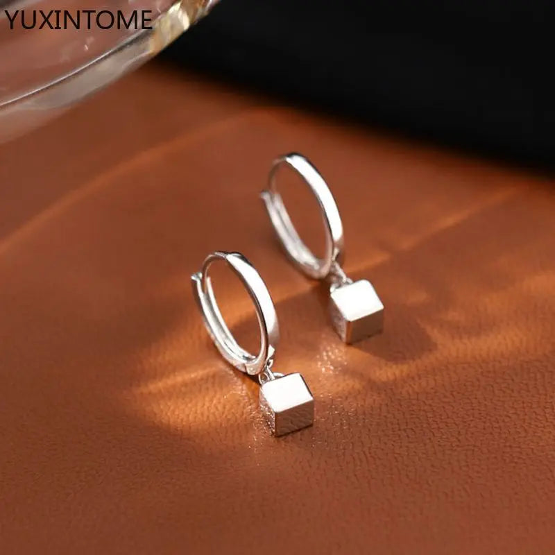 These stylish earrings feature a square drop design made of 925 sterling silver. The ear needles are also sterling silver, making these earrings durable and hypoallergenic.