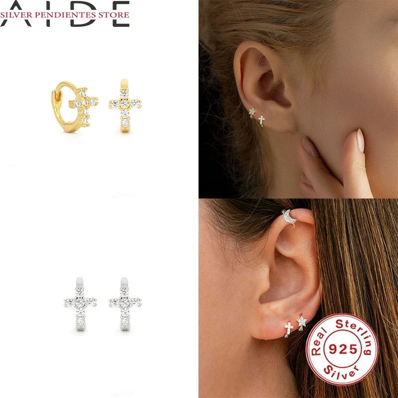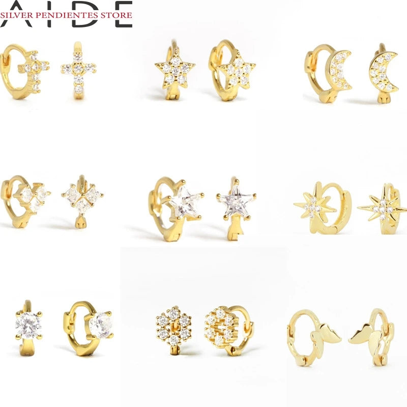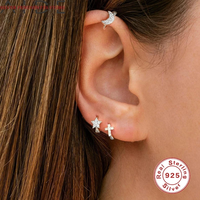 These 6mm hoop earrings are made of high-quality 925 sterling silver and feature a star moon design with mini cross zircon accents. Perfect for women looking for a stylish and elegant accessory.