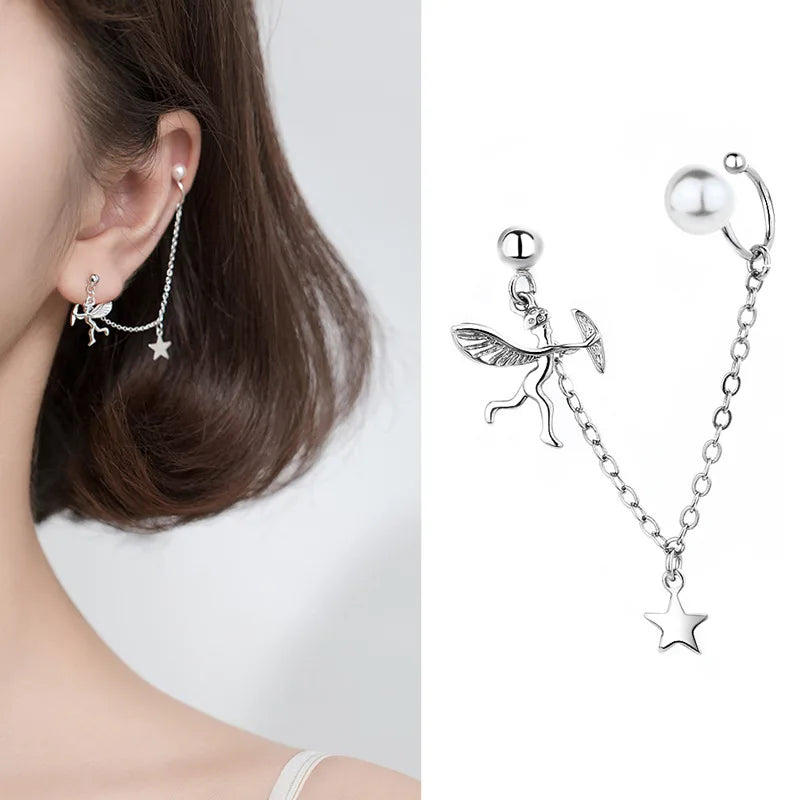 These punk-inspired stud earrings are made of high-quality 925 sterling silver. The dangle tassel design features an angel star, making them a trendy and stylish accessory for women and girls.