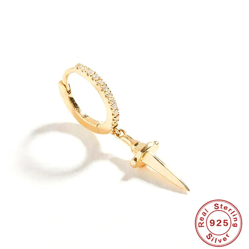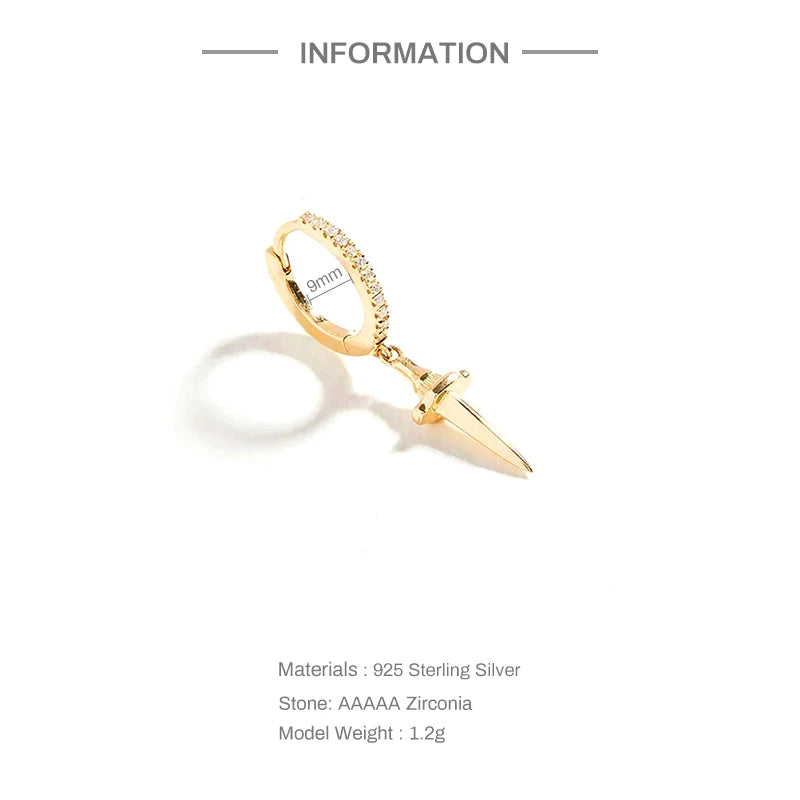 Add a touch of punk to your style with this fun and edgy dagger pendant earring in 925 sterling silver. Featuring a close diamond design, this jewelry piece is perfect for ladies who love unique accessories.