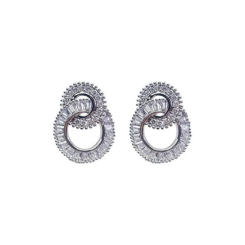 These elegant earrings feature double circle design with micro-set zircon stones. Made with 925 sterling silver, these earrings are perfect for adding a touch of sparkle to any outfit.