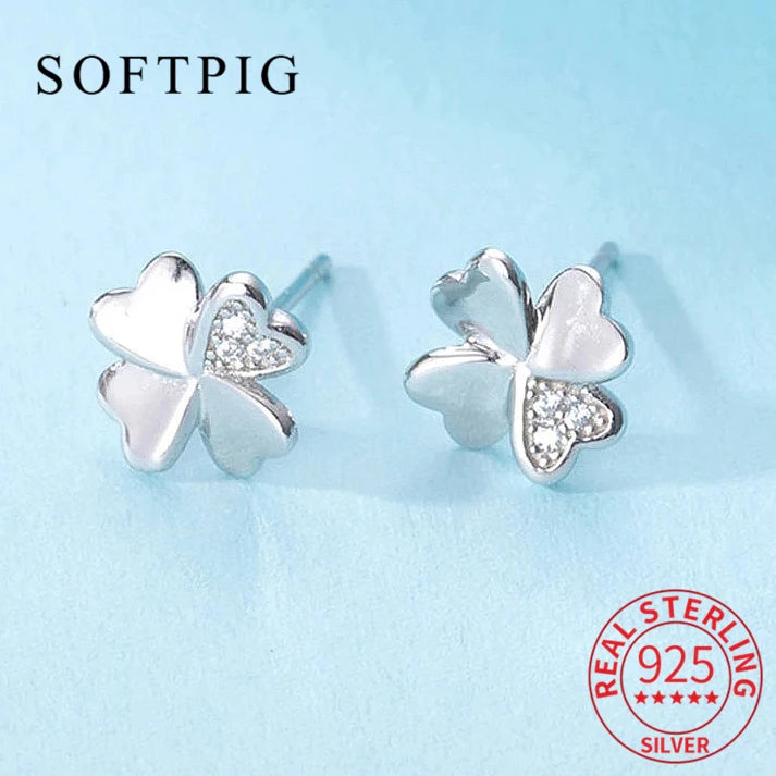 925 Sterling Silver Zircon Flower Stud Earrings Women Fine Jewelry