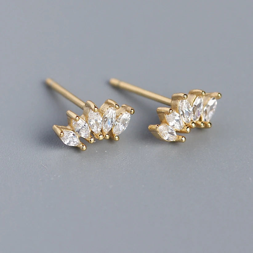 Add a touch of elegance to your look with these classic stud earrings crafted from genuine 925 sterling silver. Featuring marquis-cut zircon stones in an oval setting, these minimalist accessories are perfect for everyday wear.