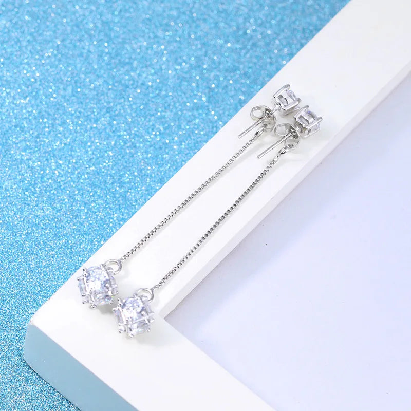 Elegant and sophisticated, these long crystal earrings are made of genuine 925 sterling silver. Perfect for women who love classic jewelry with a modern twist.