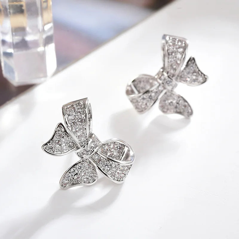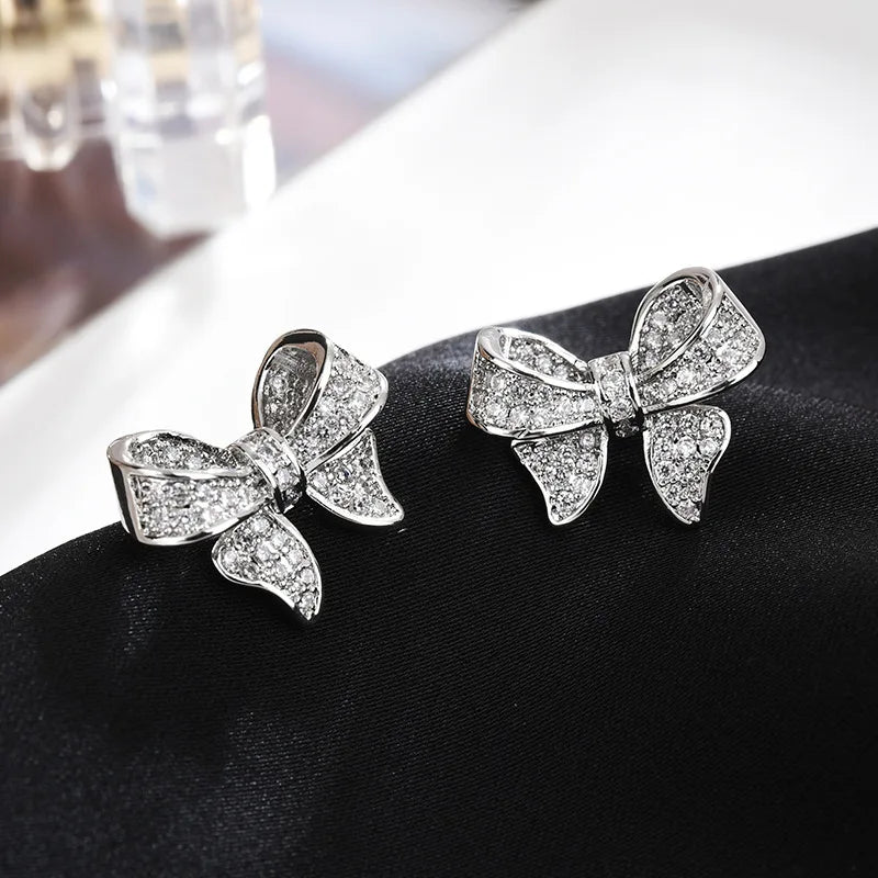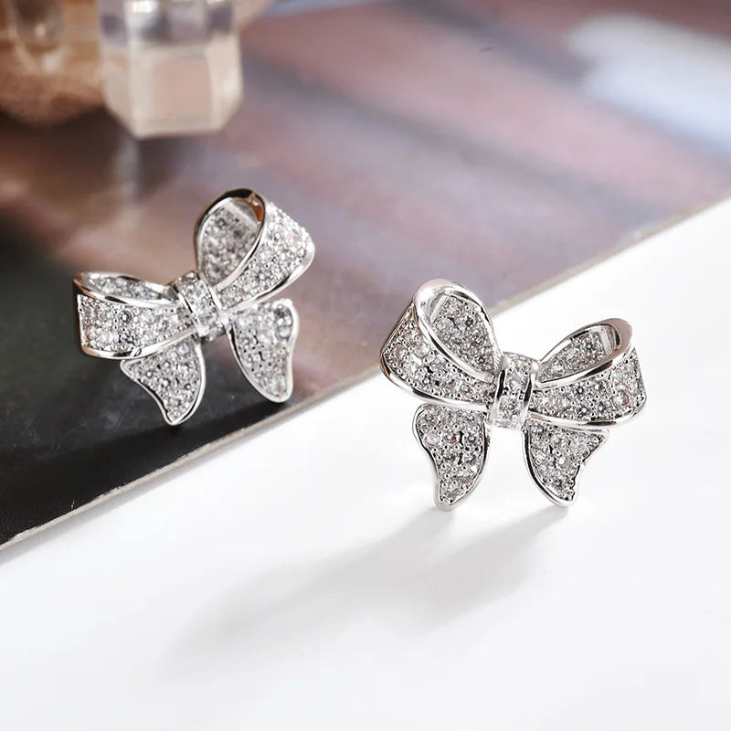 Austrian Crystal Sterling Silver Bow Ear Pin Earrings
