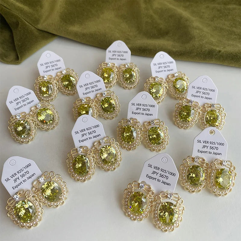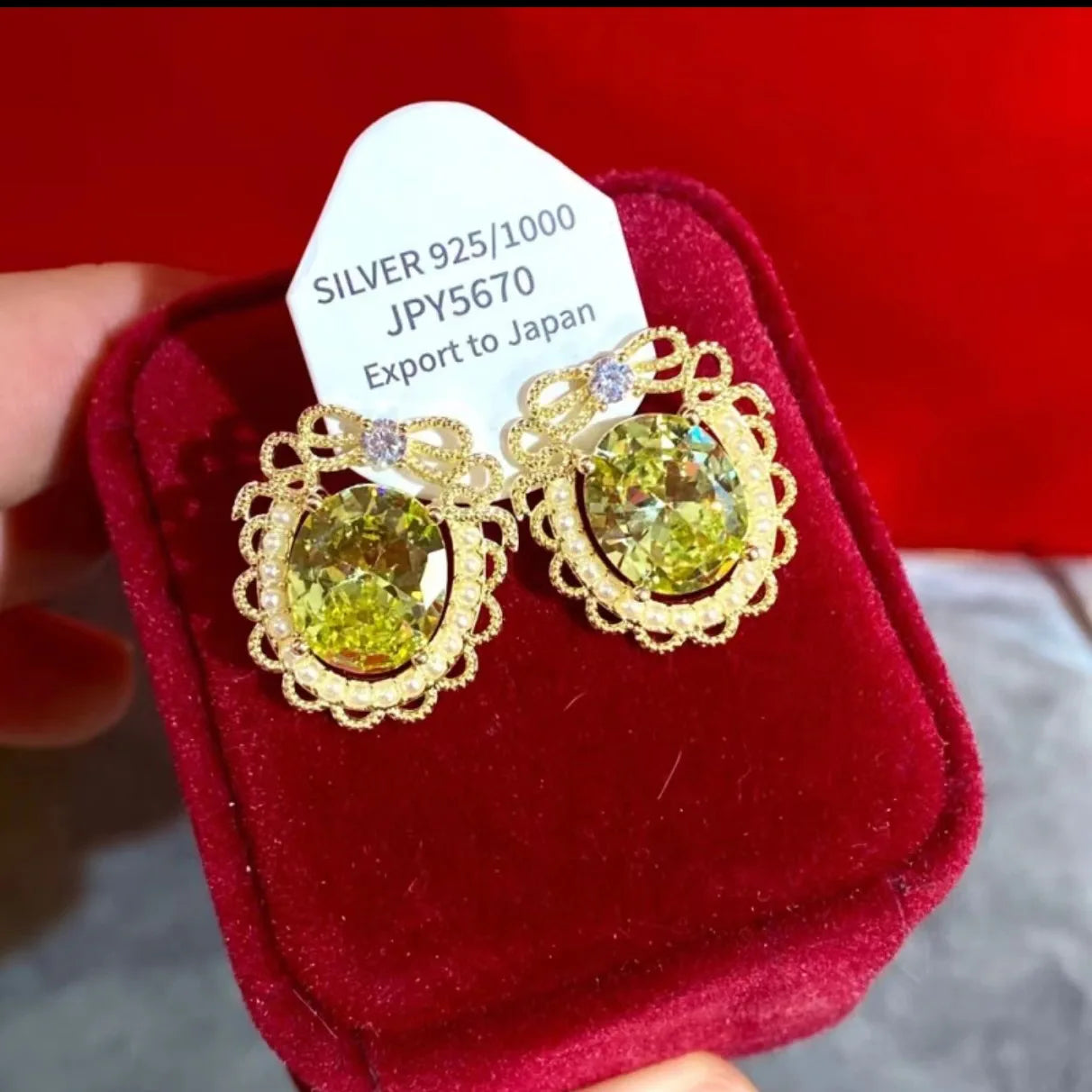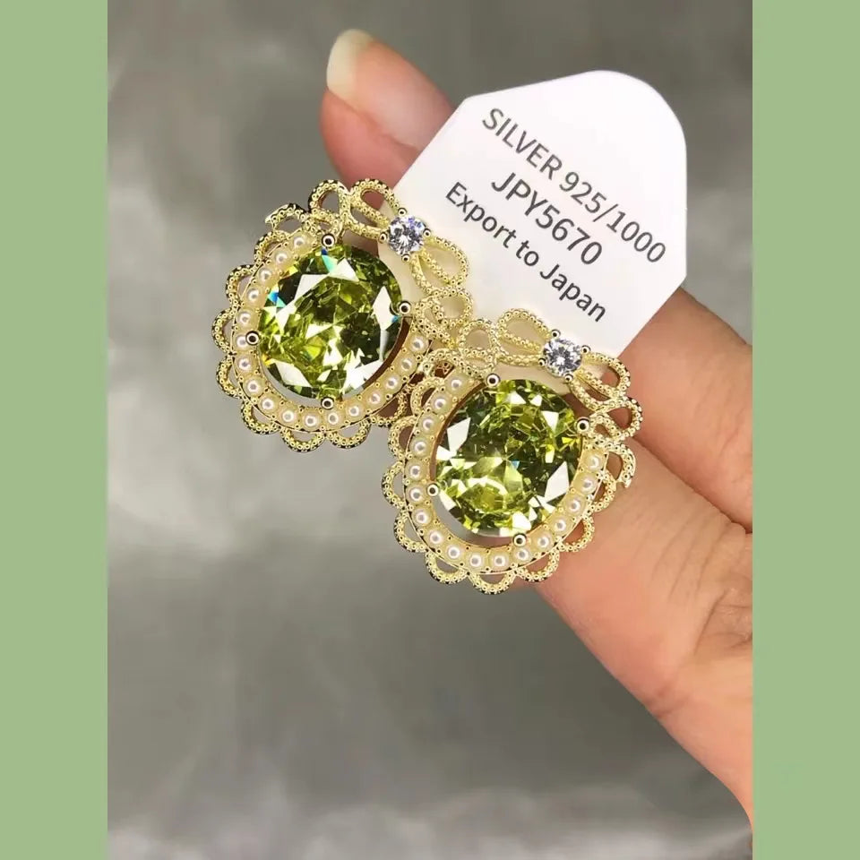 Austrian Peridot Crystal Pearl Earring Olive Green Stud Earrings