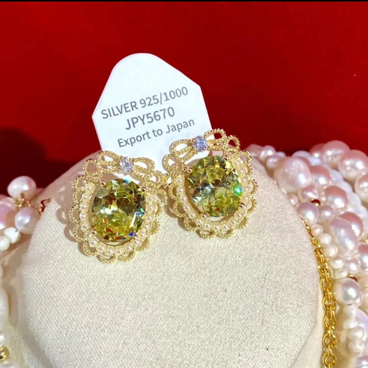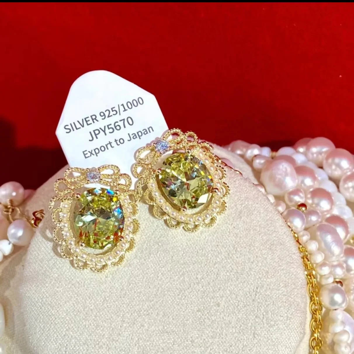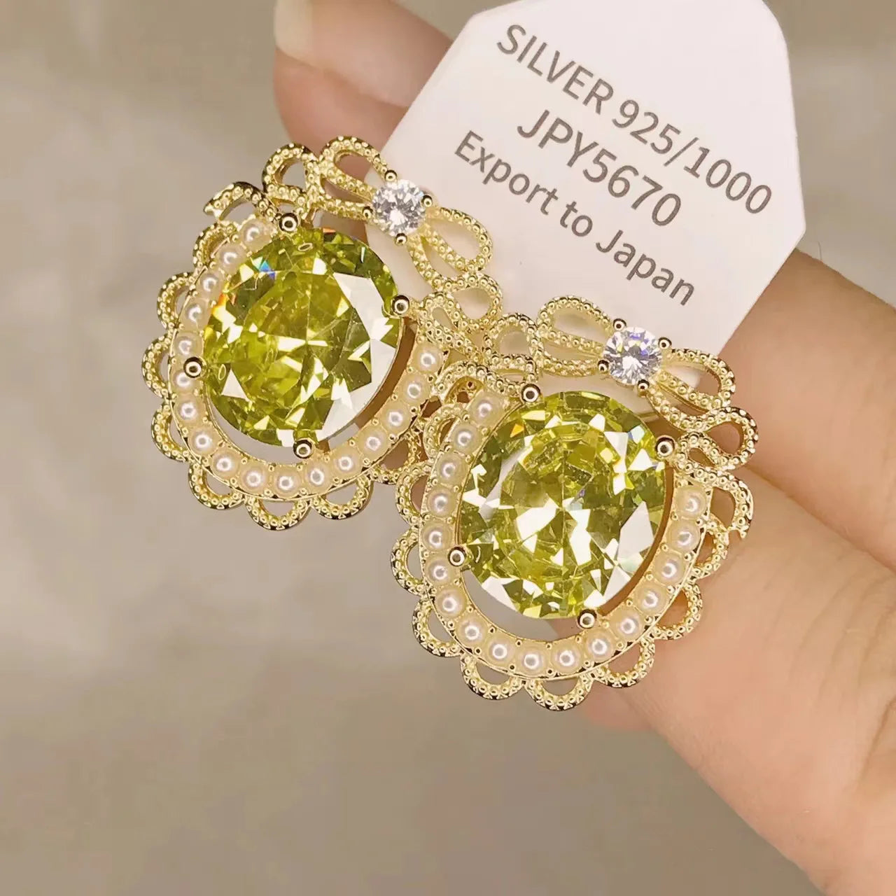 Austrian Peridot Crystal Pearl Earring Olive Green Stud Earrings