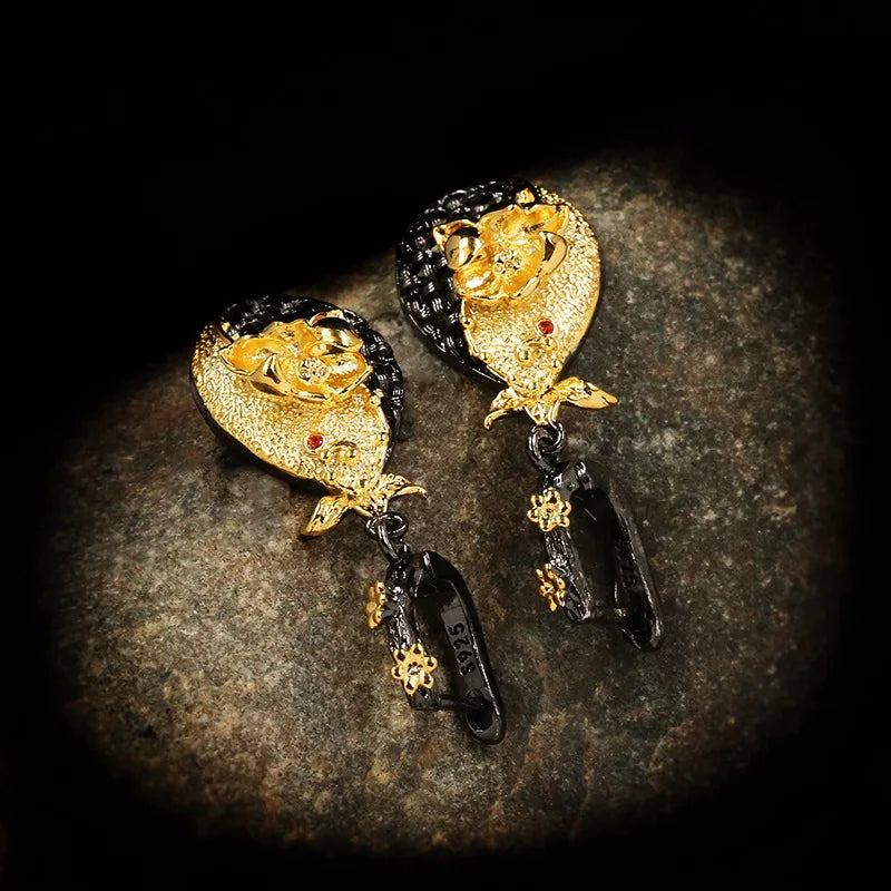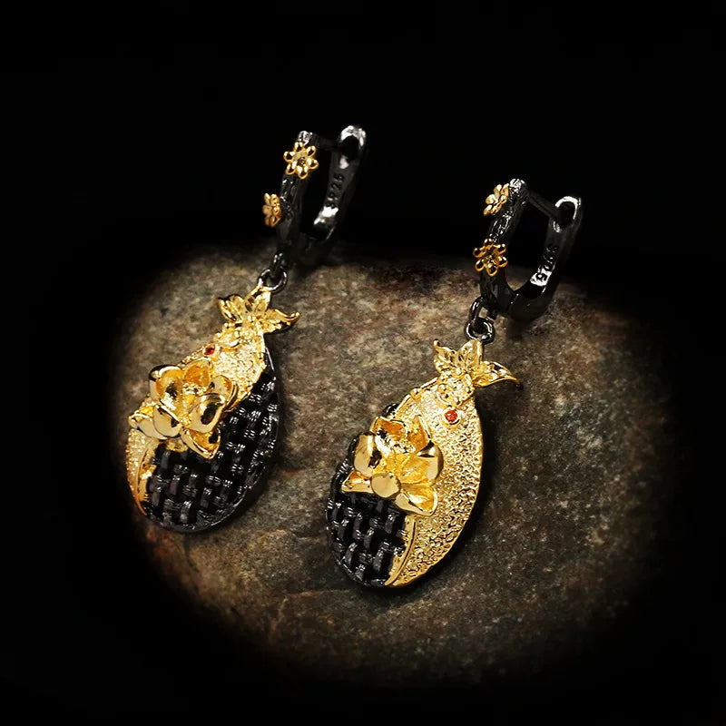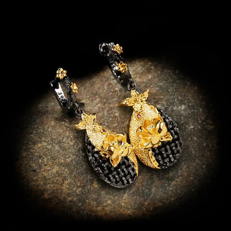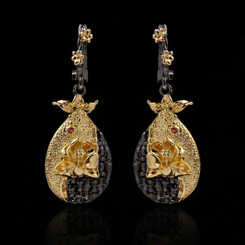Bohemia Jewelry Two Tone Flower Dangle Earrings