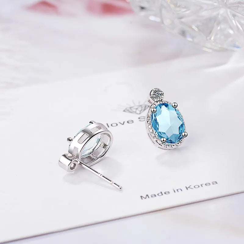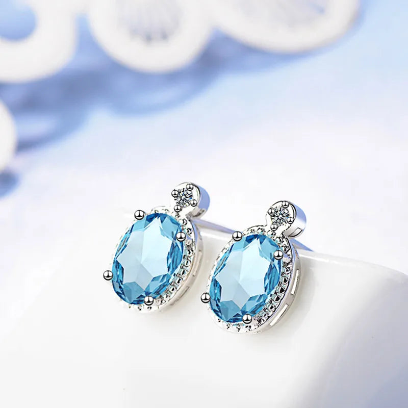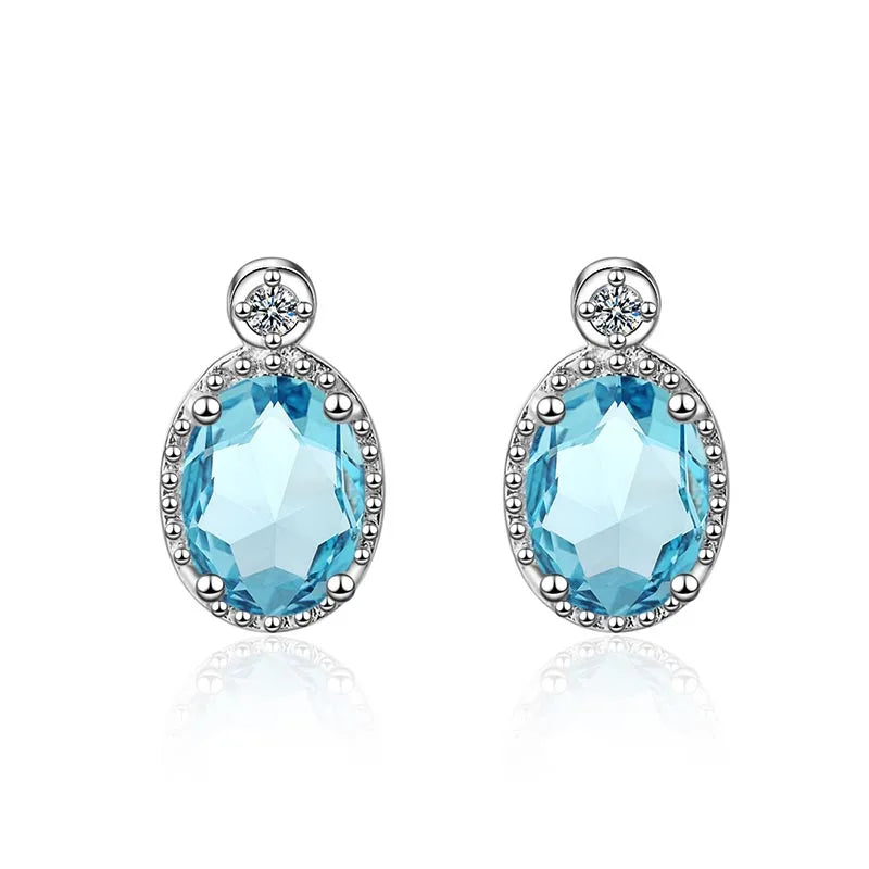 These classic silver earrings feature oval aquamarine gemstones, making them perfect for engagements, parties, or as a gift. The elegant design adds a touch of timeless beauty to any outfit.