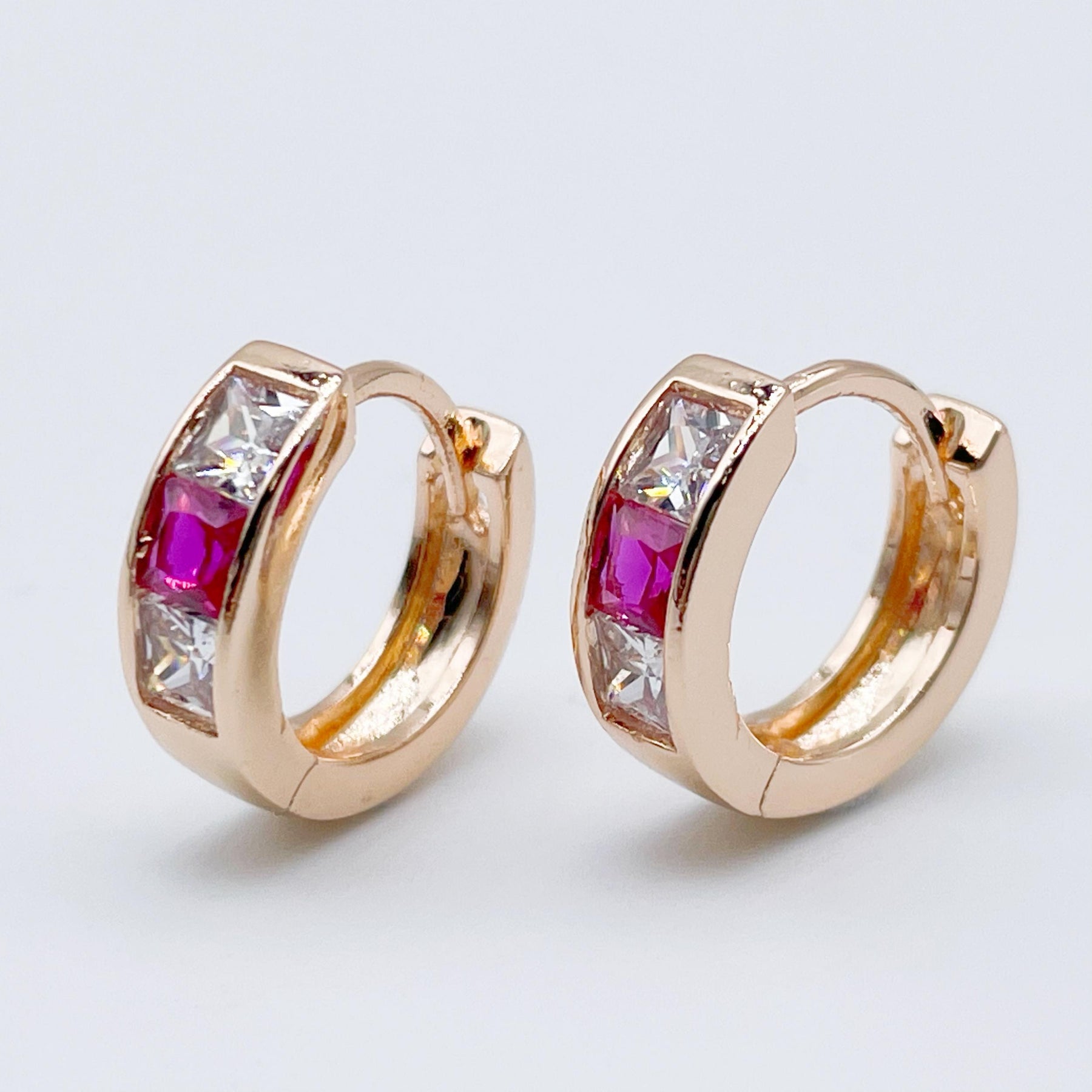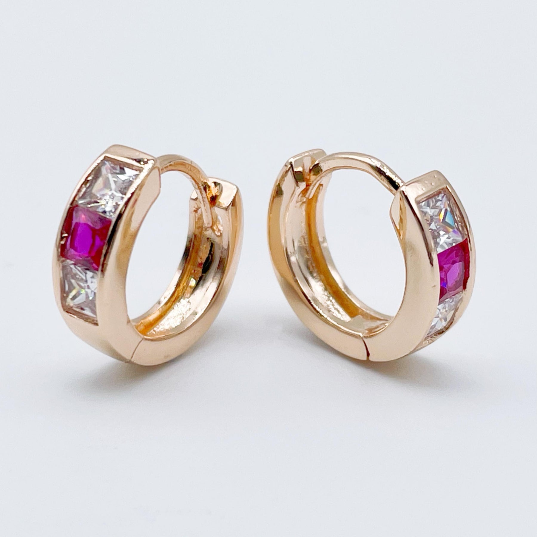 Elegant and beautiful earrings featuring rose red zircon stones in a circle round design. Perfect for adding a touch of glamour to any outfit.