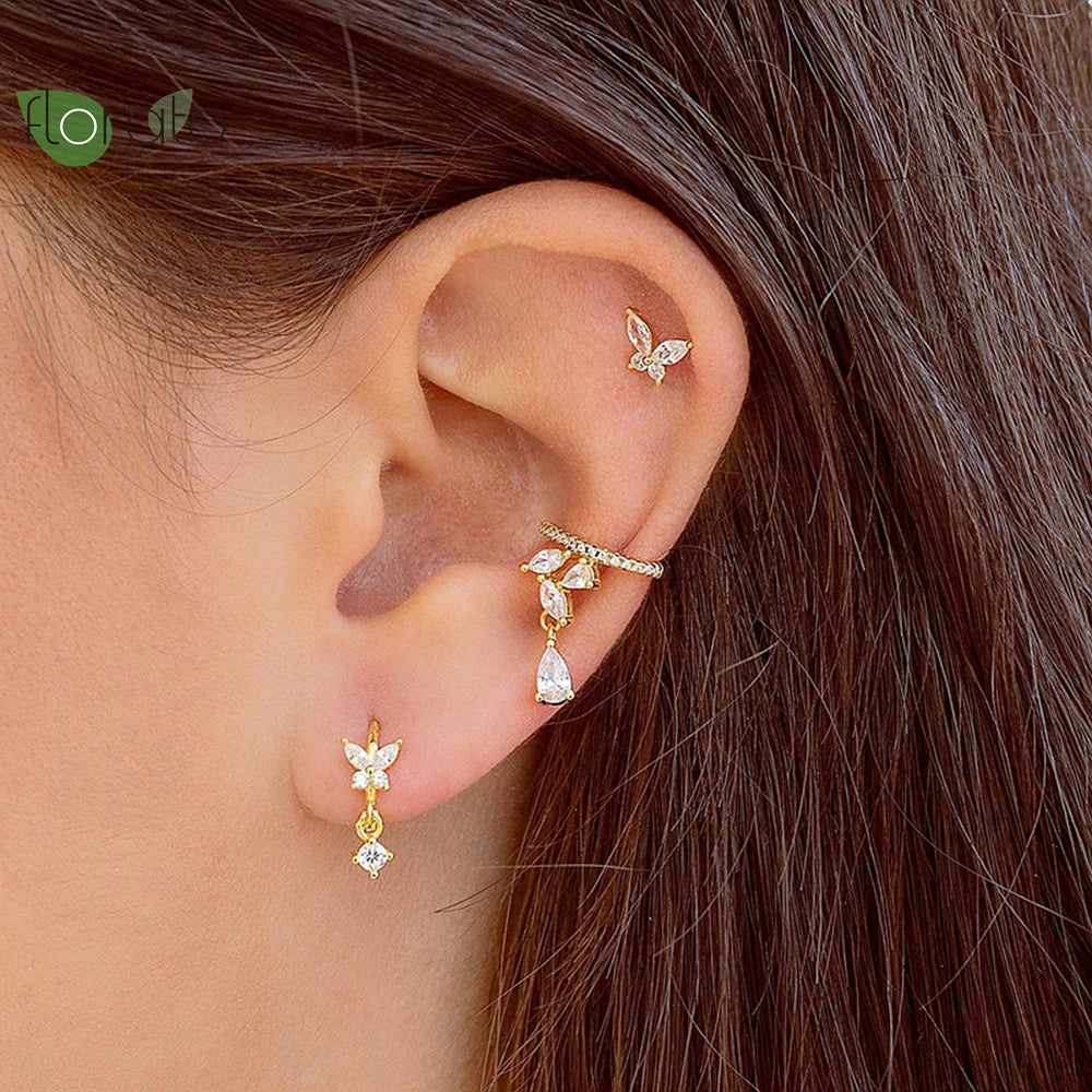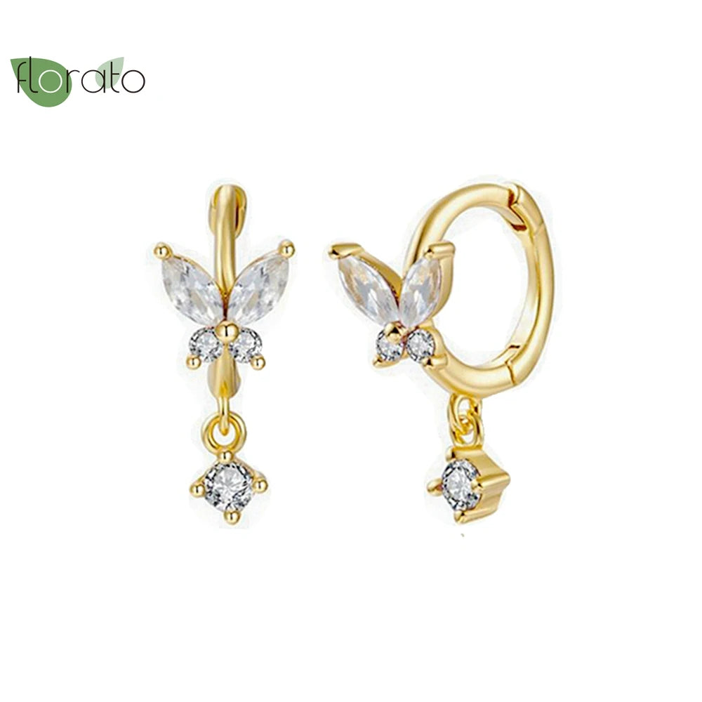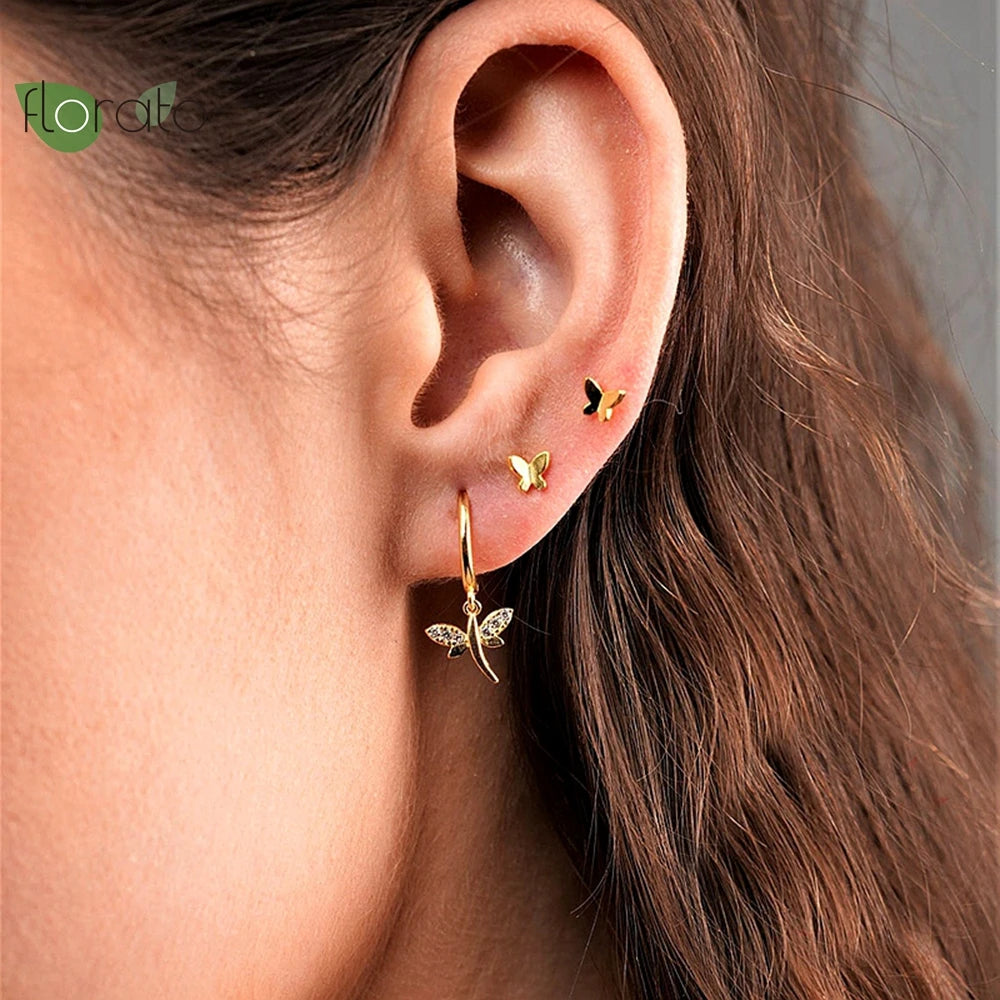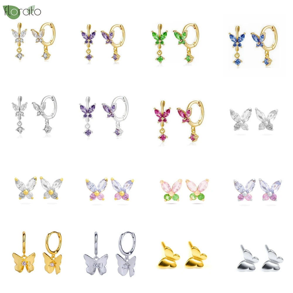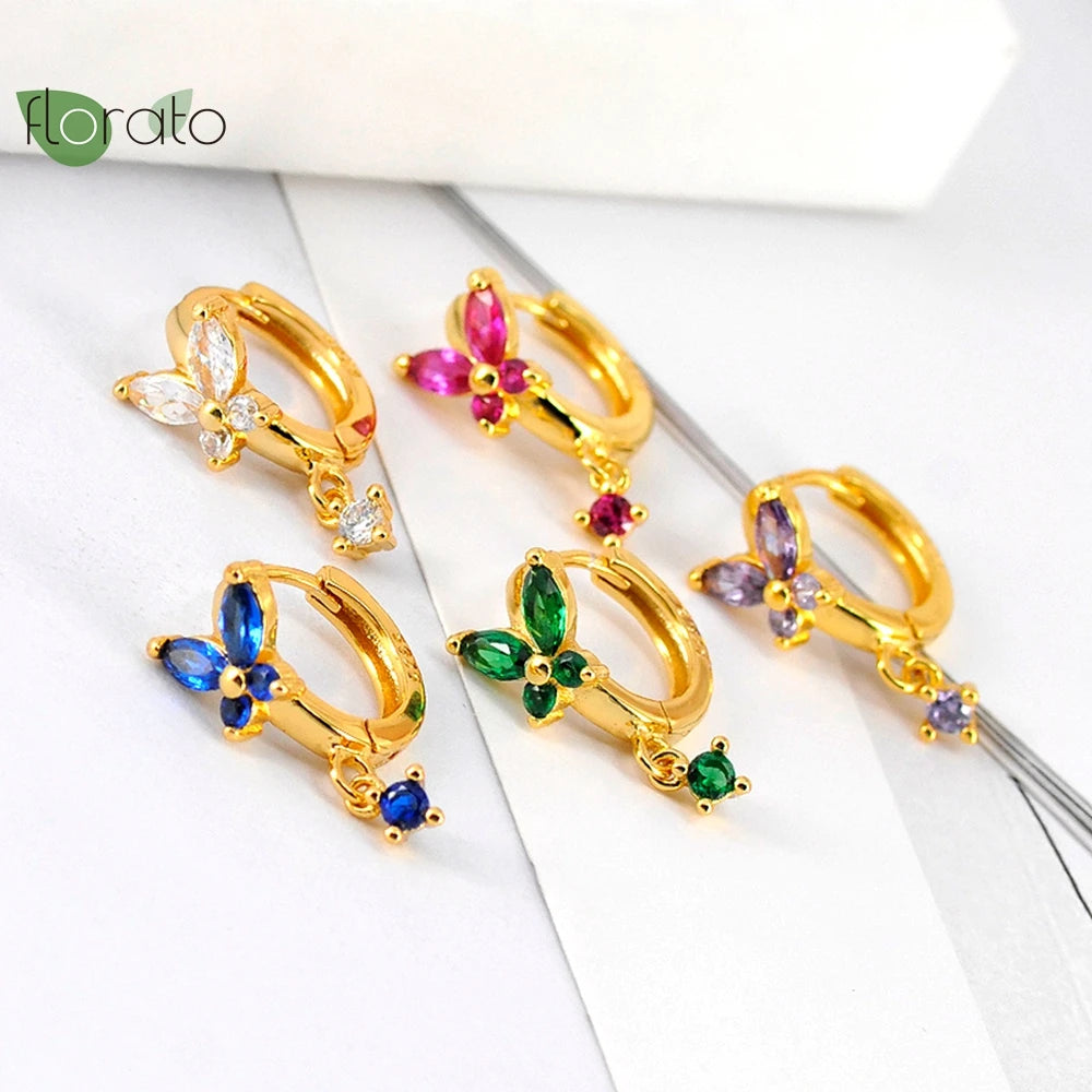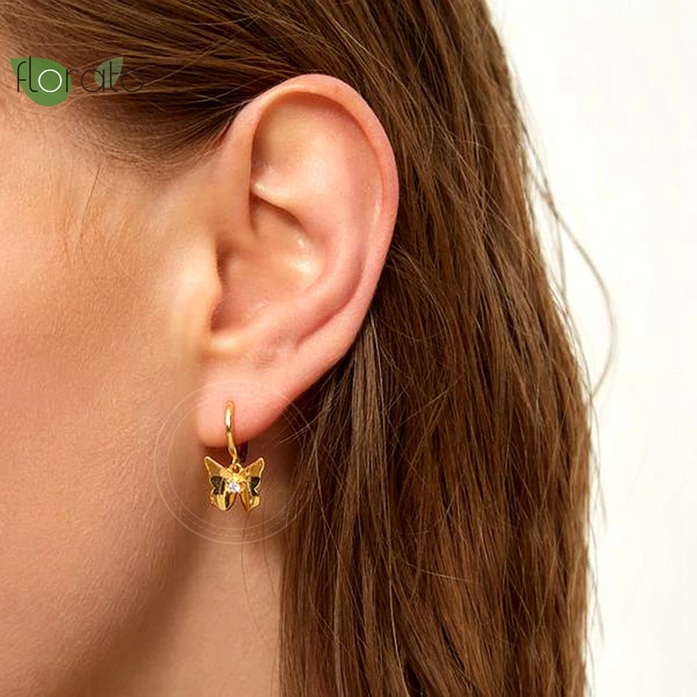 Delicate sterling silver hoop earrings featuring colorful butterfly design. Perfect for adding a touch of whimsy to your outfit.