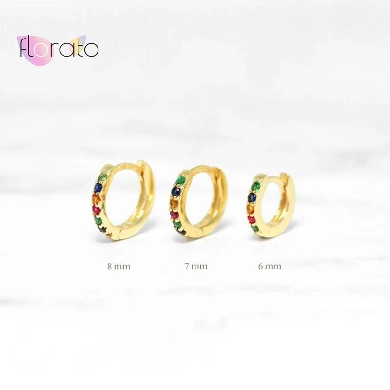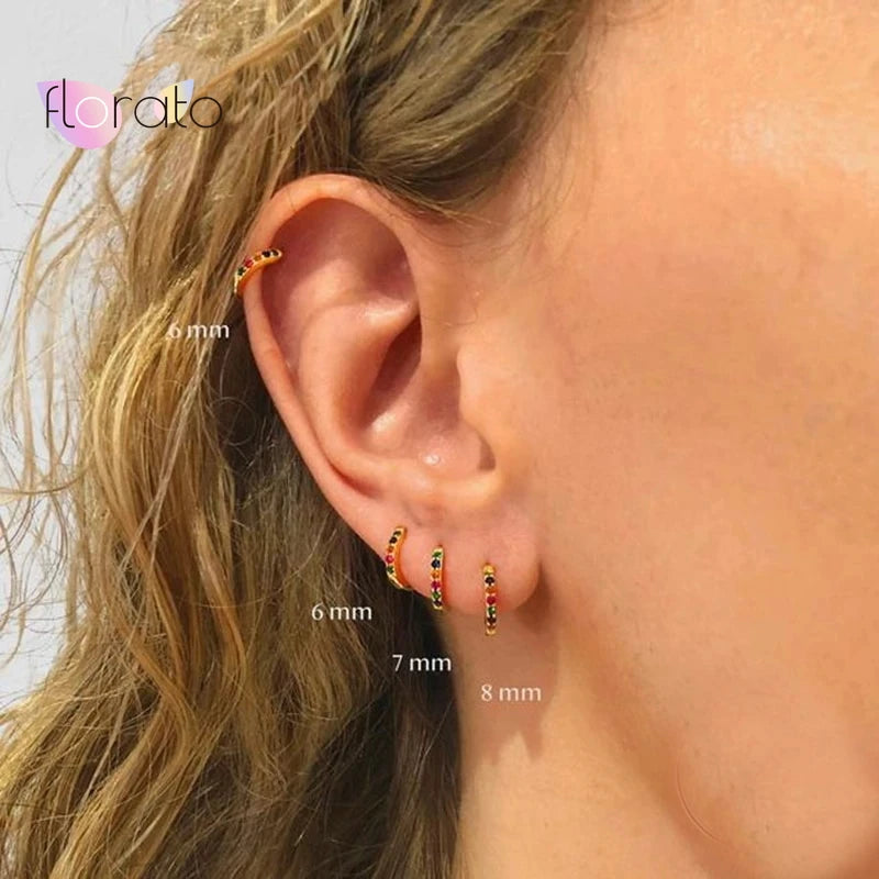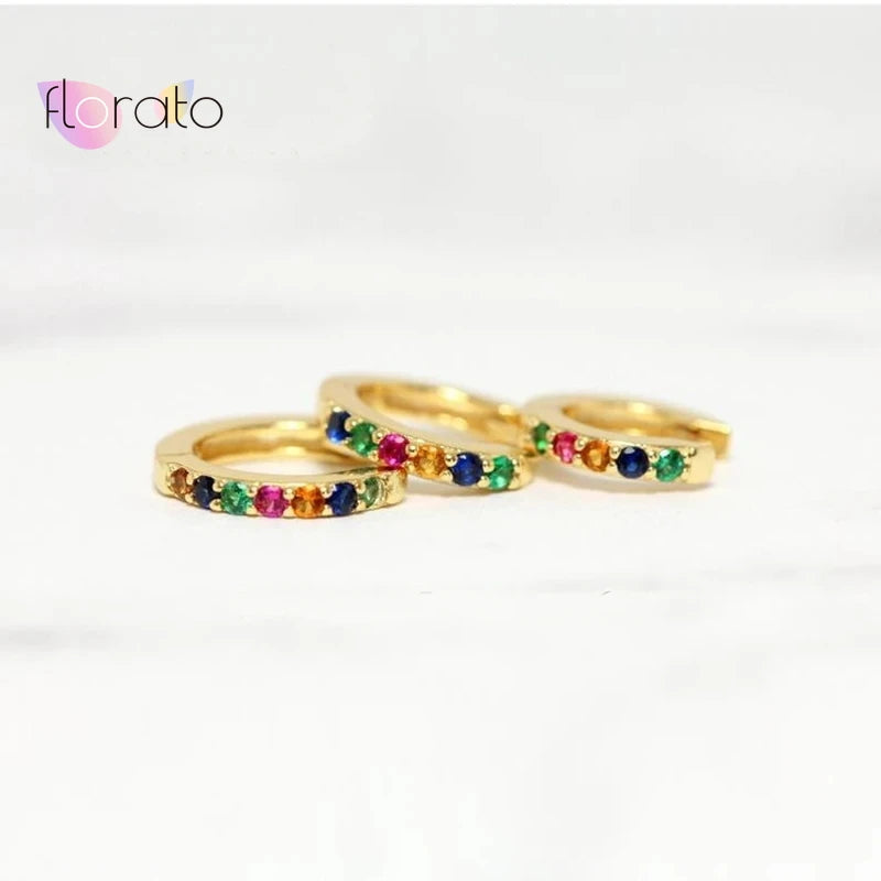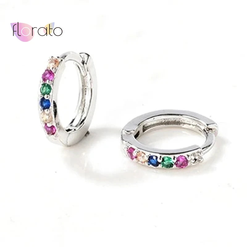 Add a pop of color to your outfit with these stunning hoop earrings featuring colorful crystals. Made of 925 silver, these earrings are perfect for any occasion.