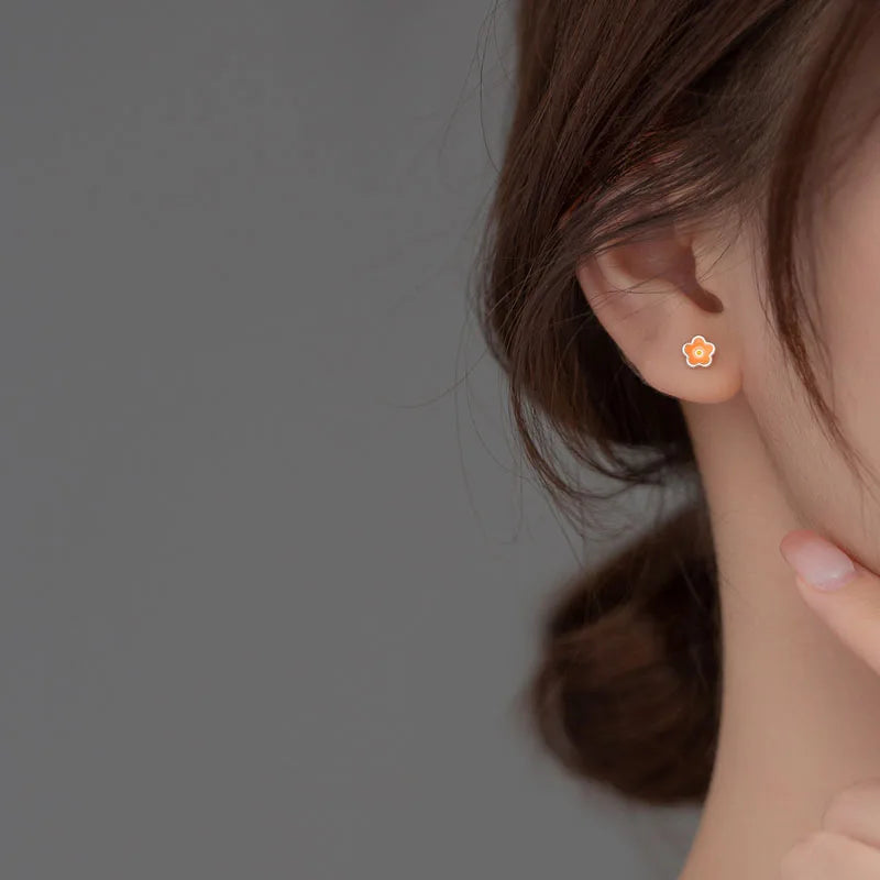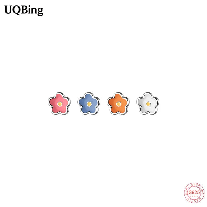 Add a pop of color to your ensemble with these asymmetrical flower stud earrings crafted from 925 sterling silver. Perfect for weddings or everyday wear.