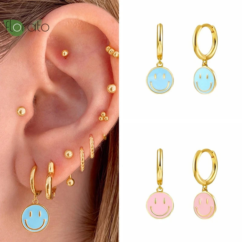 Add a touch of fun to your look with these smile face hoop earrings. Made of 925 sterling silver with vibrant enamel colors, perfect for parties and everyday wear.