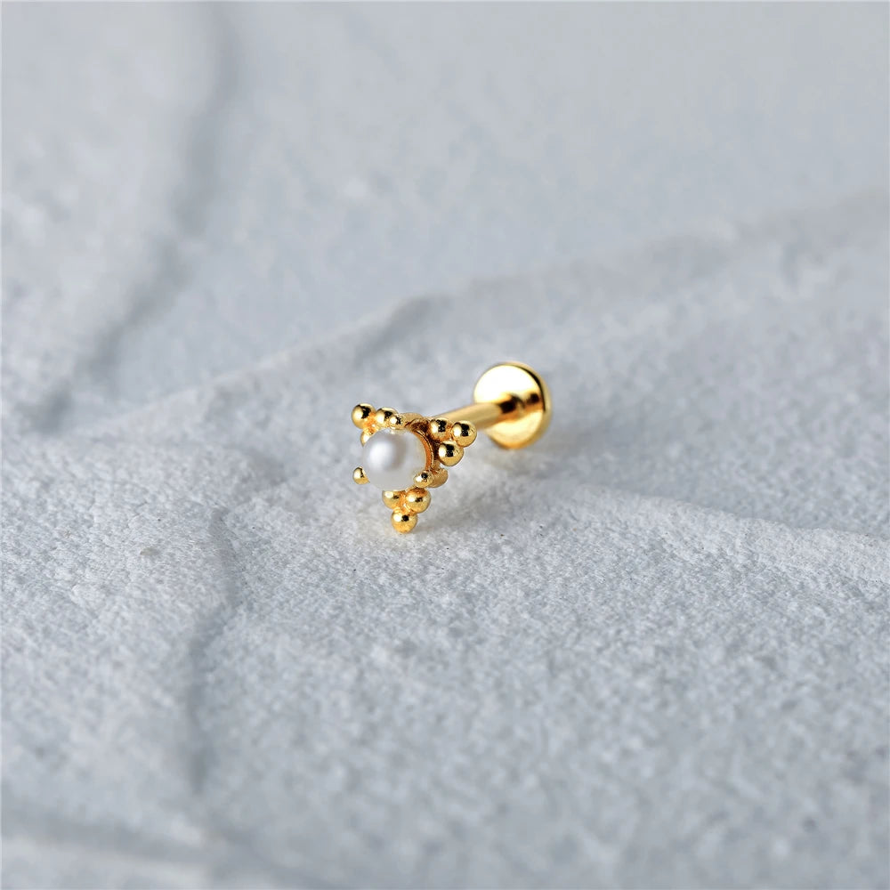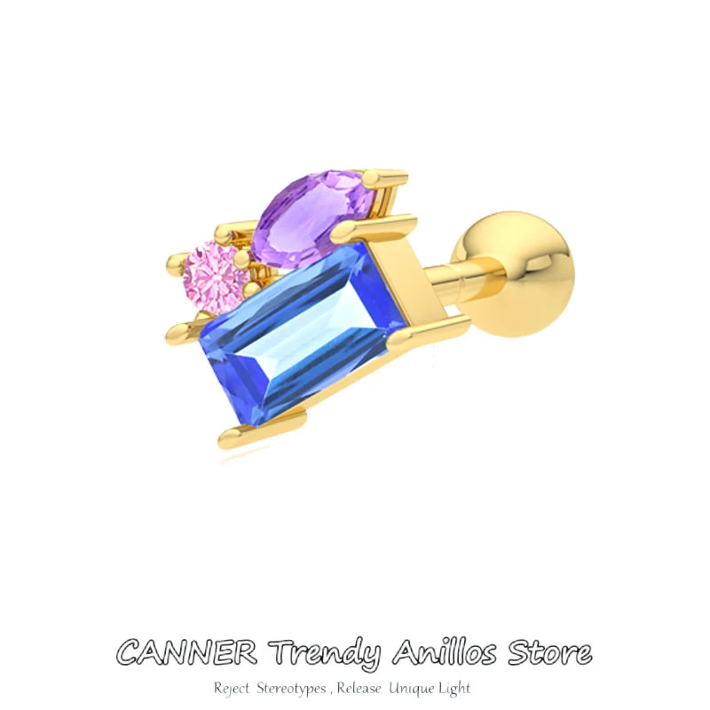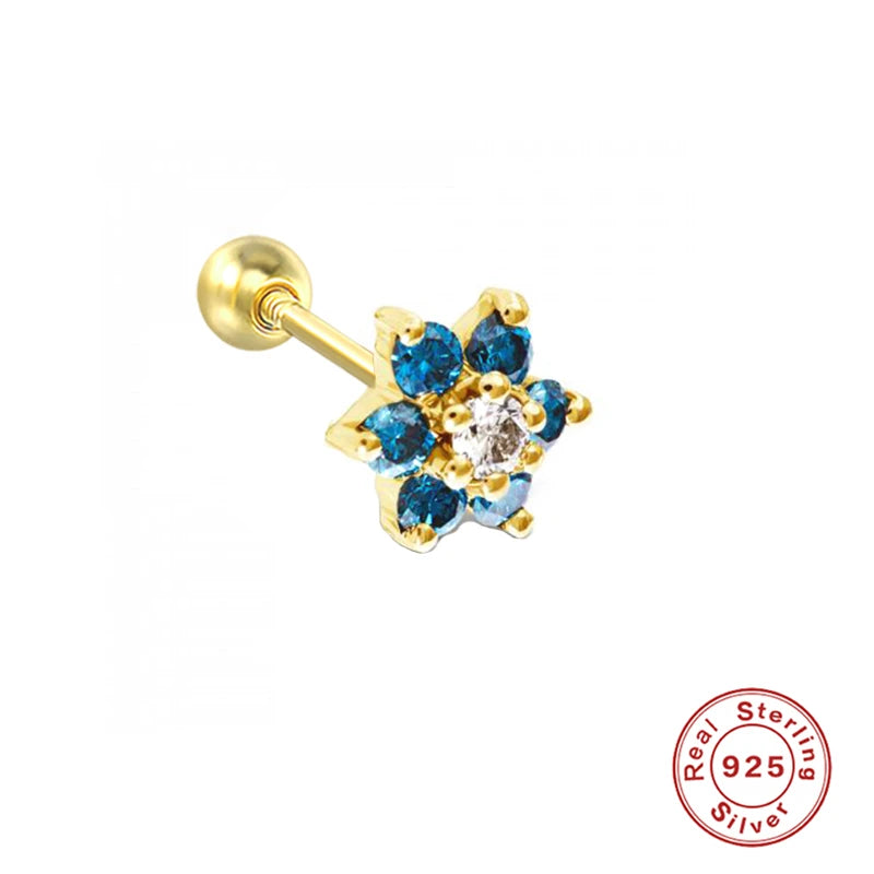 These 925 sterling silver stud earrings feature colorful zircon stones, perfect for cartilage piercing. Add a touch of sparkle to your look with these stylish earrings.