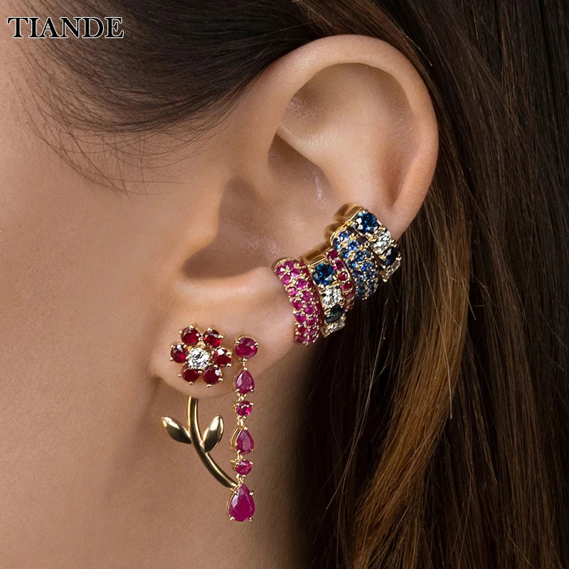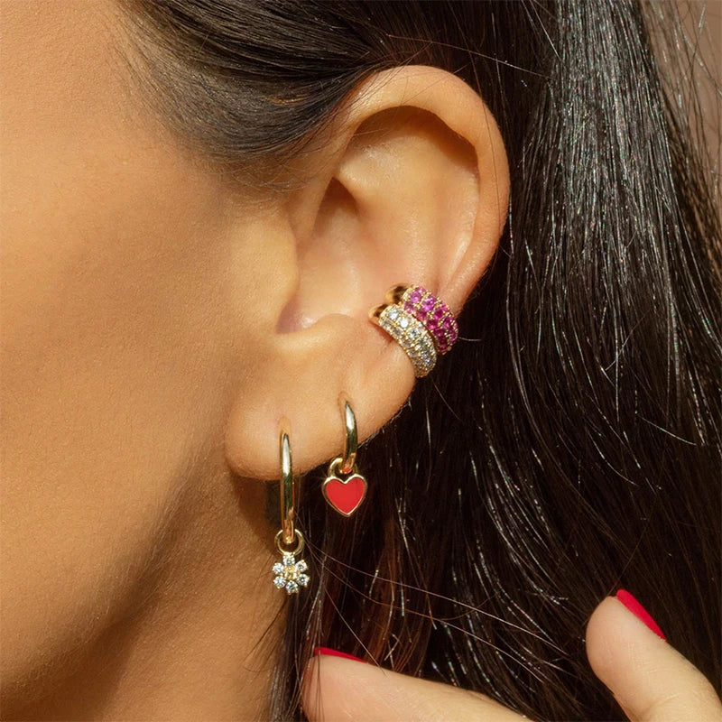 Enhance your style with these stunning plated ear cuffs clip earrings featuring colourful zircon studs. Perfect for adding a touch of sparkle to any outfit.