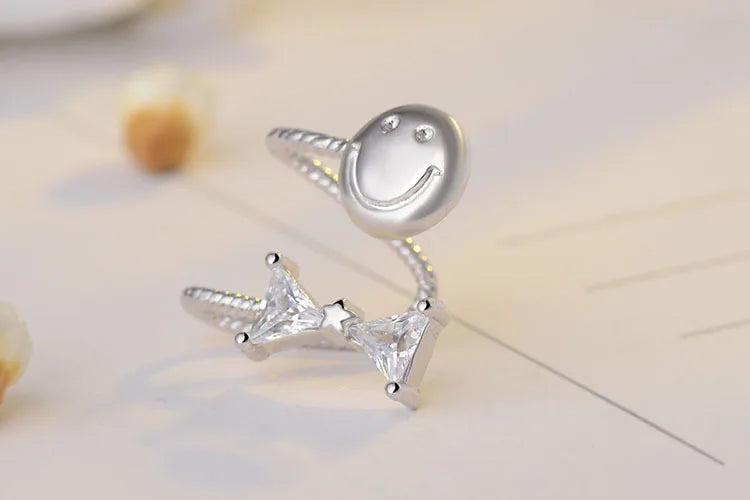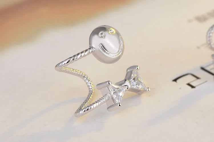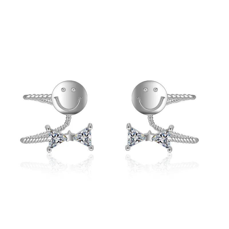 These charming clip earrings feature crystals with bow smile face design. Perfect for Christmas gift. Made of pure 925 sterling silver.