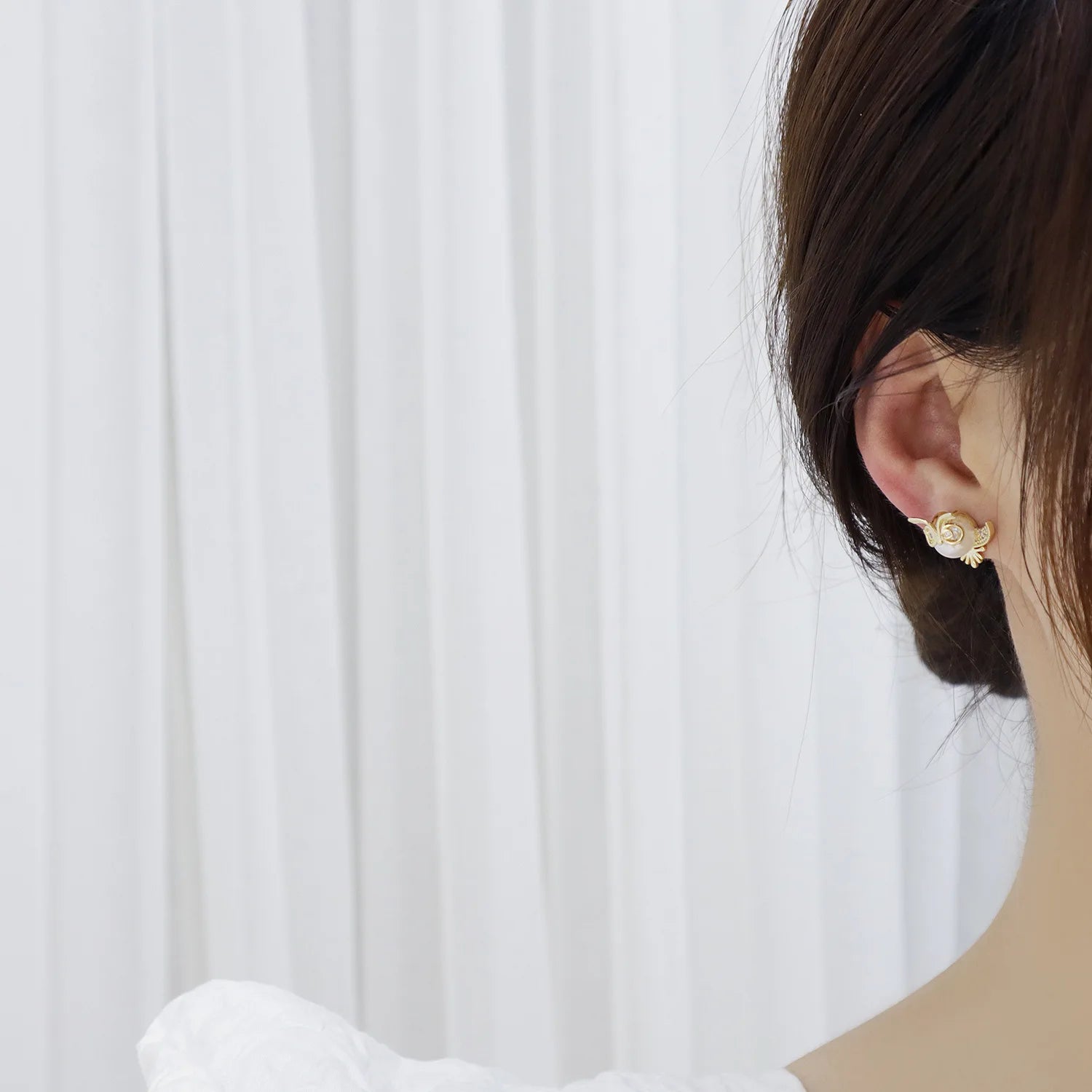 - 14k gold plated stud earrings with crystal and pearl accents
