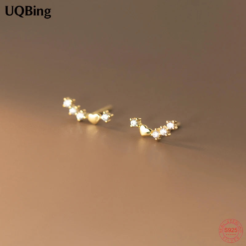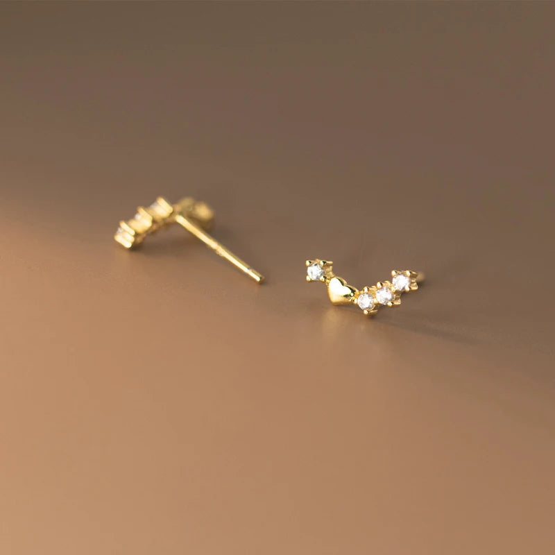 Add a touch of elegance with these minimalist heart stud earrings. Made of 925 sterling silver with 18K gold plating, featuring CZ zircon stones for a radiant look.