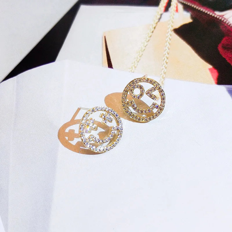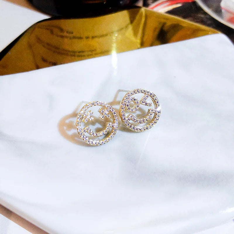 Add a touch of sparkle to your look with these ultra-shiny openwork smiley face stud earrings. Made with 18K silver-plated zircon, these geometric earrings are perfect for any occasion.