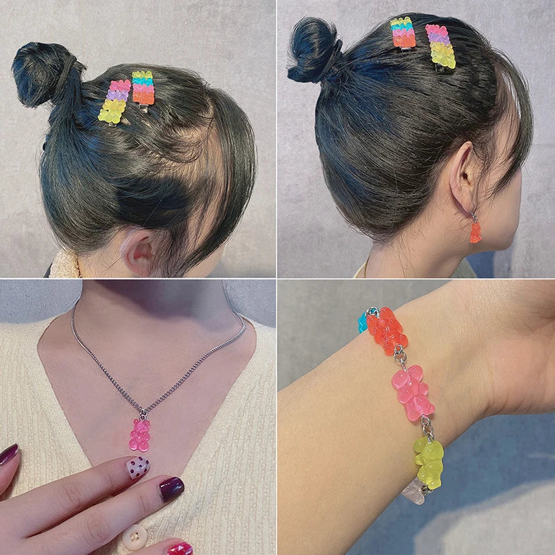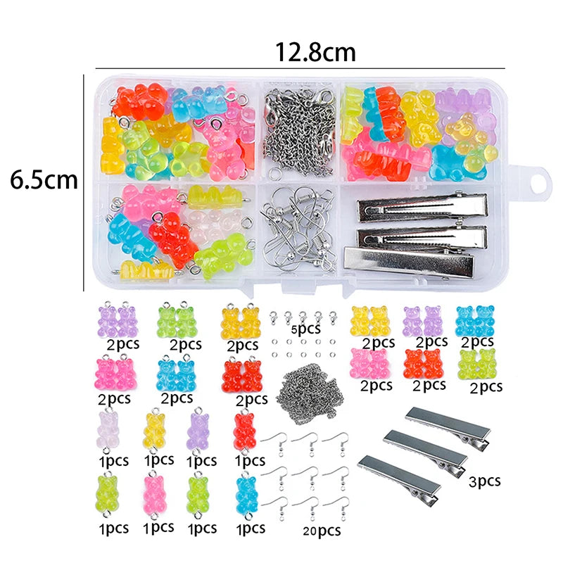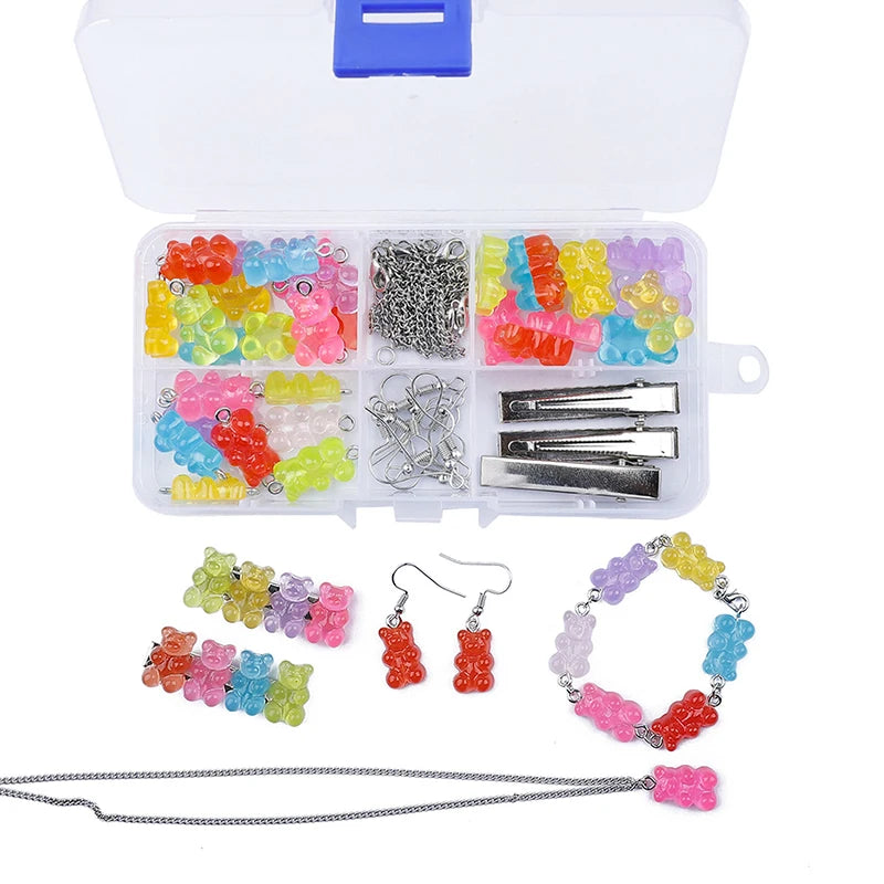 - Comes with bear charms, necklace pendant, lobster clasp, jump rings, earring hook, and hair clip
