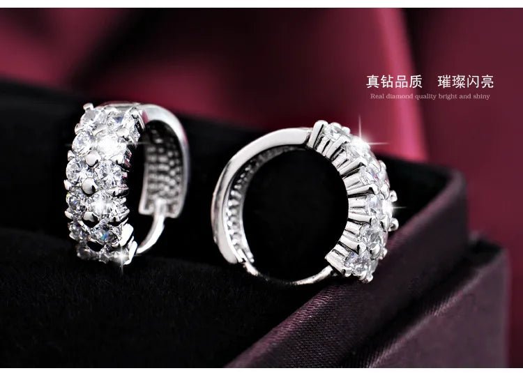 Add some sparkle to your outfit with these double row zircon stud earrings. Made of 925 sterling silver, these earrings are perfect for birthdays or any special occasion. They are anti-allergic, making them safe for sensitive skin.