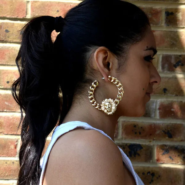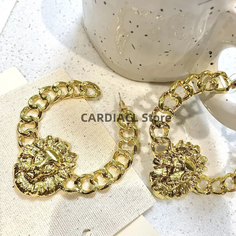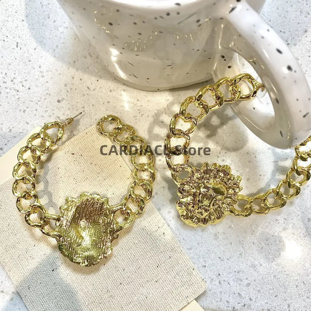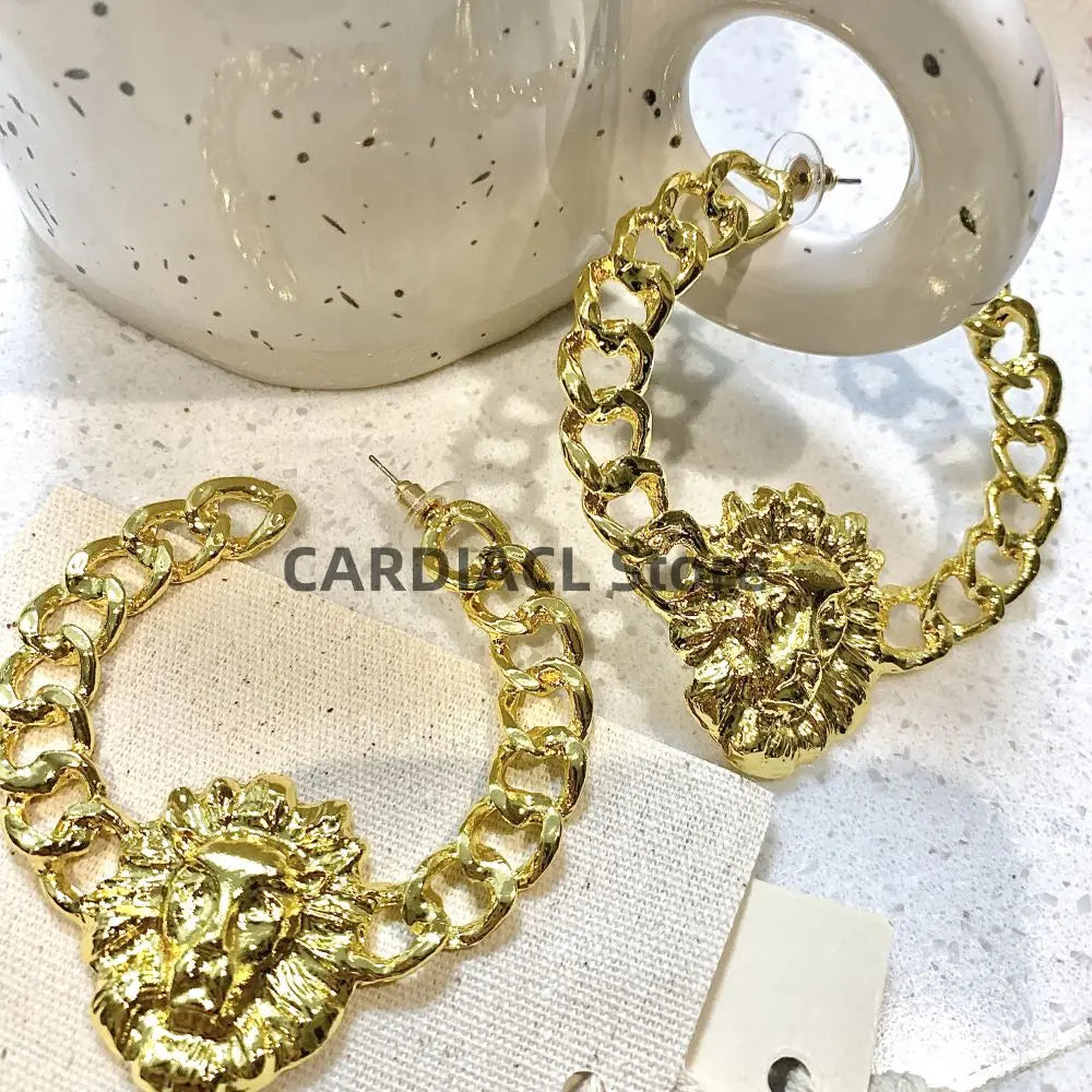 Add a touch of elegance to your look with these lion head stud earrings featuring an exaggerated drop oil design.