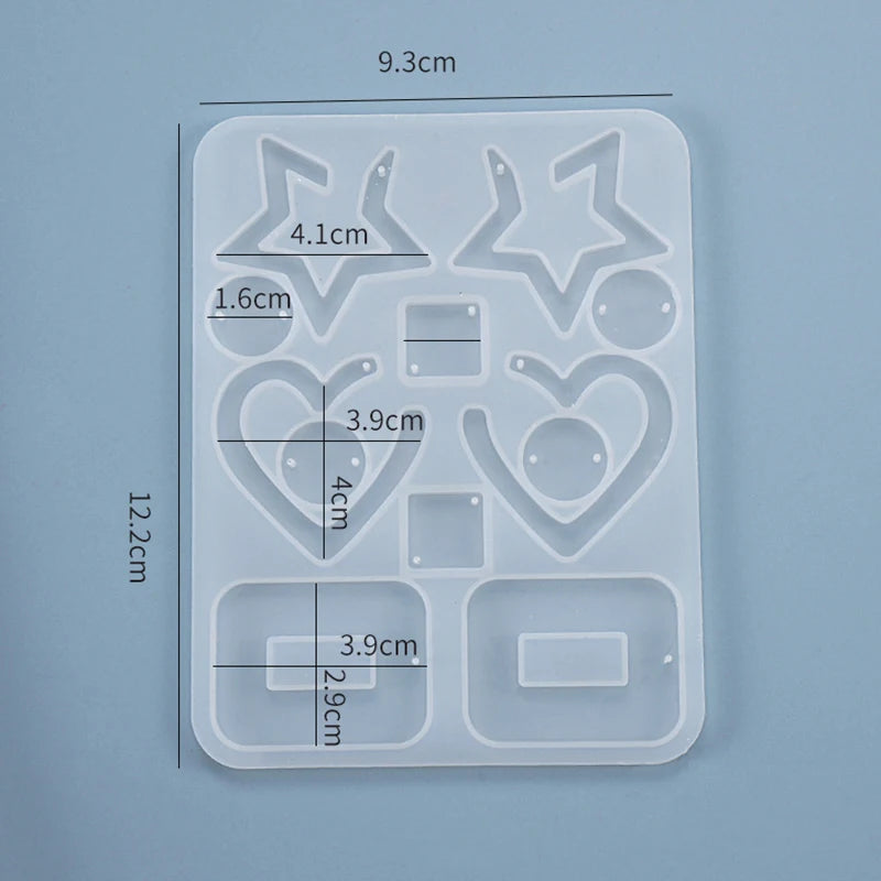 Create your own unique earrings, pendants, necklaces, keychains, and more with this round, heart, and five-pointed star silicone mold. Perfect for DIY jewelry making using UV epoxy resin.