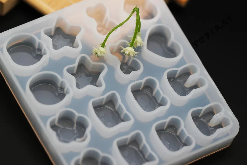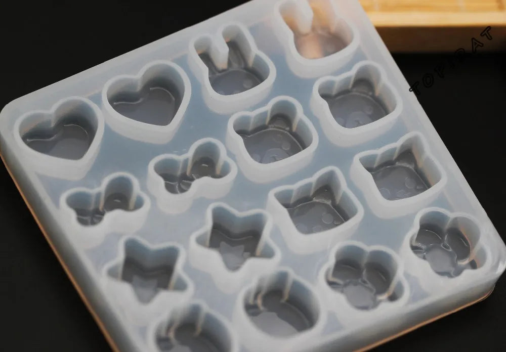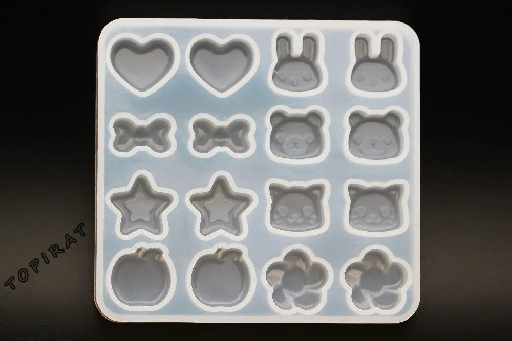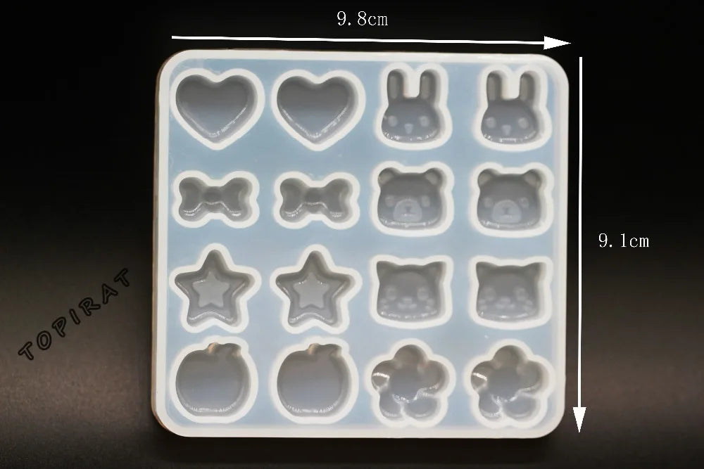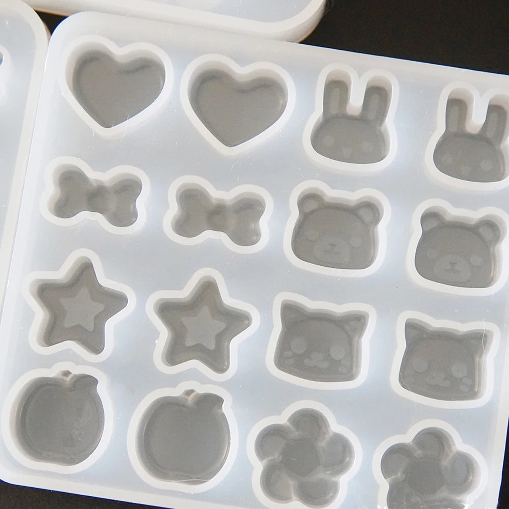 Create stunning earrings with this silicone mold for epoxy resin jewelry making. Design various shapes like hearts, stars, rabbits, cats, and bows.