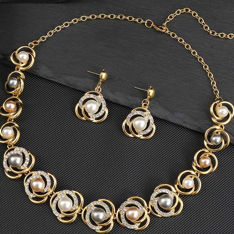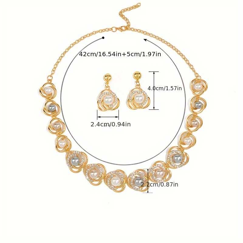 • Product Particulars: This elegant jewelry set features a necklace and matching earrings made from high quality materials adorned with dazzling faux pearls and sparkling rhinestone accents. The earrings are designed for secure and comfortable wear, featuring an easy closure for effortless styling.