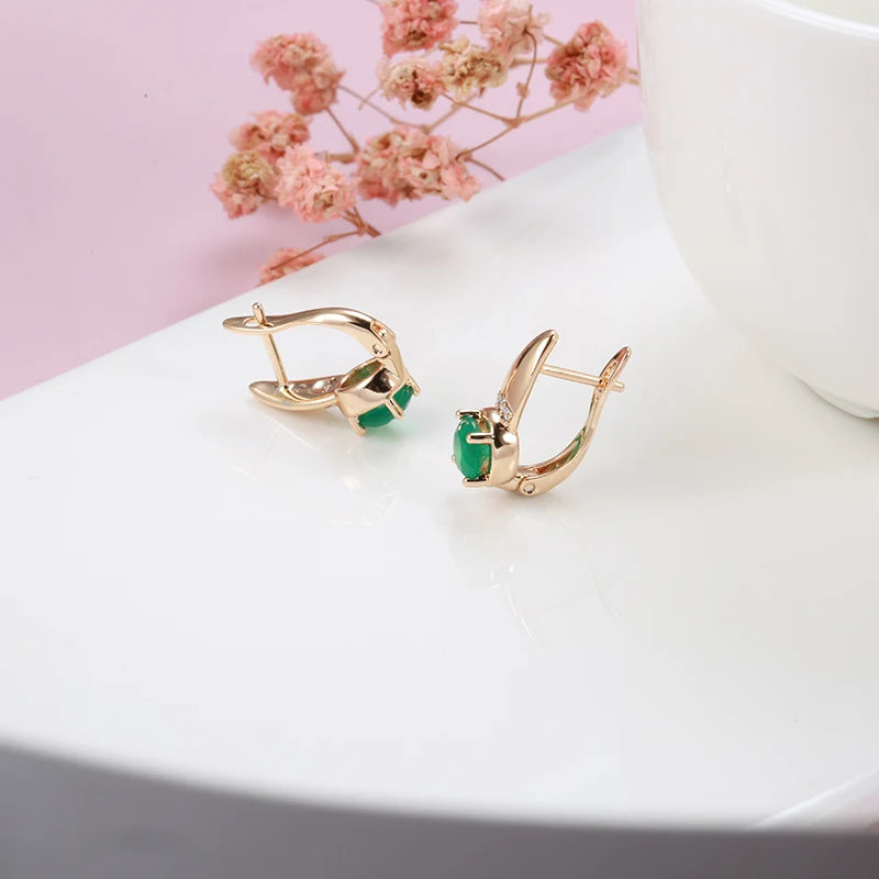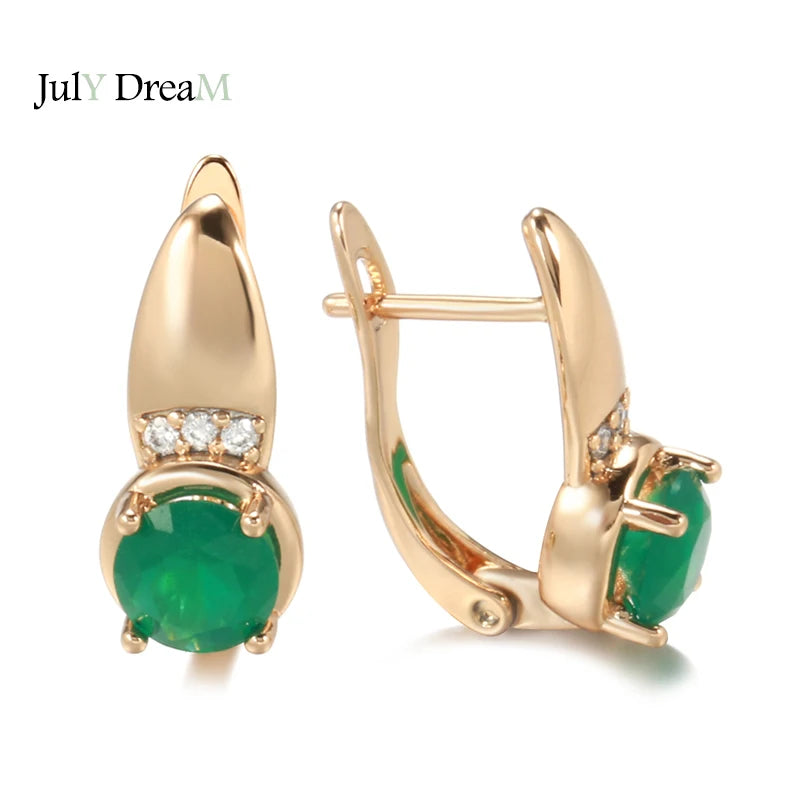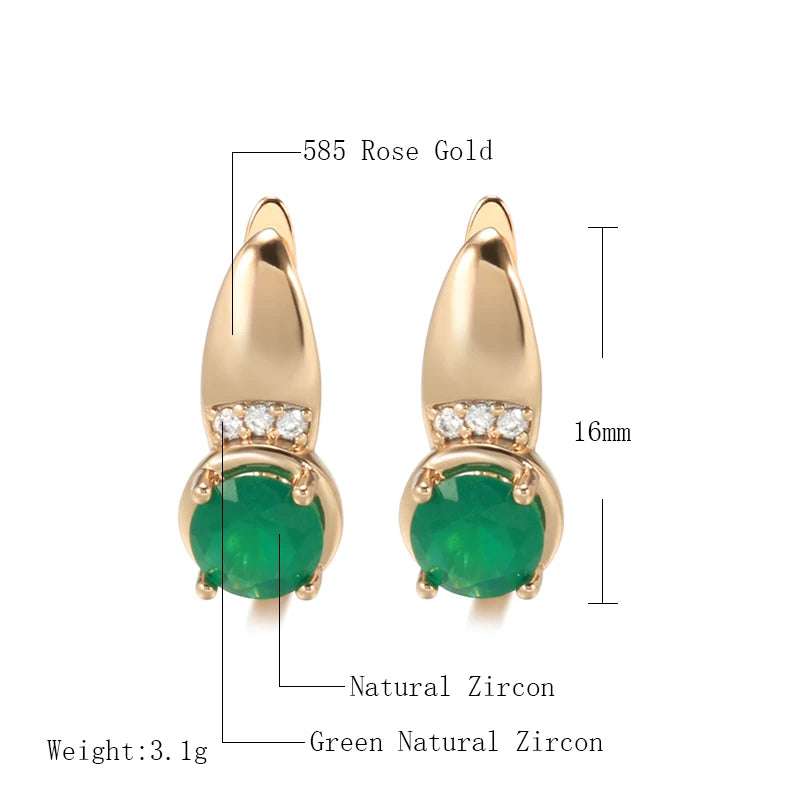 Add a touch of elegance to your party look with these stunning emerald round cut zircon earrings. Made with 585 rose gold, these clip earrings feature inlay natural crystal for a glamorous sparkle.